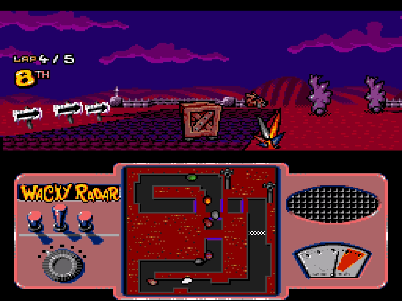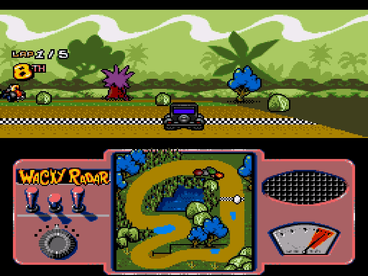 Гоночная игра из одноимённой серии. Игра полностью проходима, от А до Я. Сюжета нет, и не нужен. На выбор 8 героев, предстоит пройти пару трасс, выполненных в псевдо 3D. Помимо обычный мерок аля "кто быстрее" можно использовать "плюшки", разбросанные на трассе. Разбросанные "плюшки" дают либо ловушку для соперников, которые находятся позади вас, либо ускорение для себя любимого. Уровни разнообразные в оформлении, но 3D составляющая не красит игру, да и бывает трудно определить трамплин, который ведёт в пропасть. Поэтому я приезжал всегда последним.