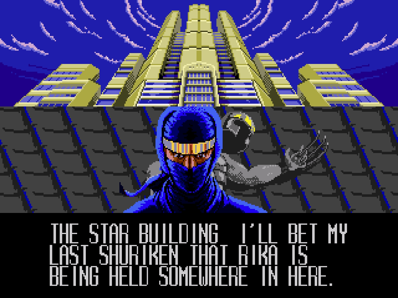 Сюжет у игры есть, но на 100% его не раскрыли. Вражеский клан или наши же люди, украли древний свиток из деревни Хаябуса, и хотят раскрыть какой-то секрет. Задача юного ниндзя – узнать, кому потребовался свиток, куда пропала Рика (так и не понял, кто она) и куда вообще идти. Герой спрыгивает с самолёта прямо в город и начинается игра. К сожалению, часть сюжетных вставок автоматом пропускается. Игра на японско-английском языке, а именно – название глав на японском, а текст сюжета на английском.
