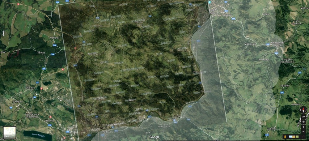 А это просто карта DayZ и его реальное расположение в Чехии, белым я наложил участок где находится вода. :]