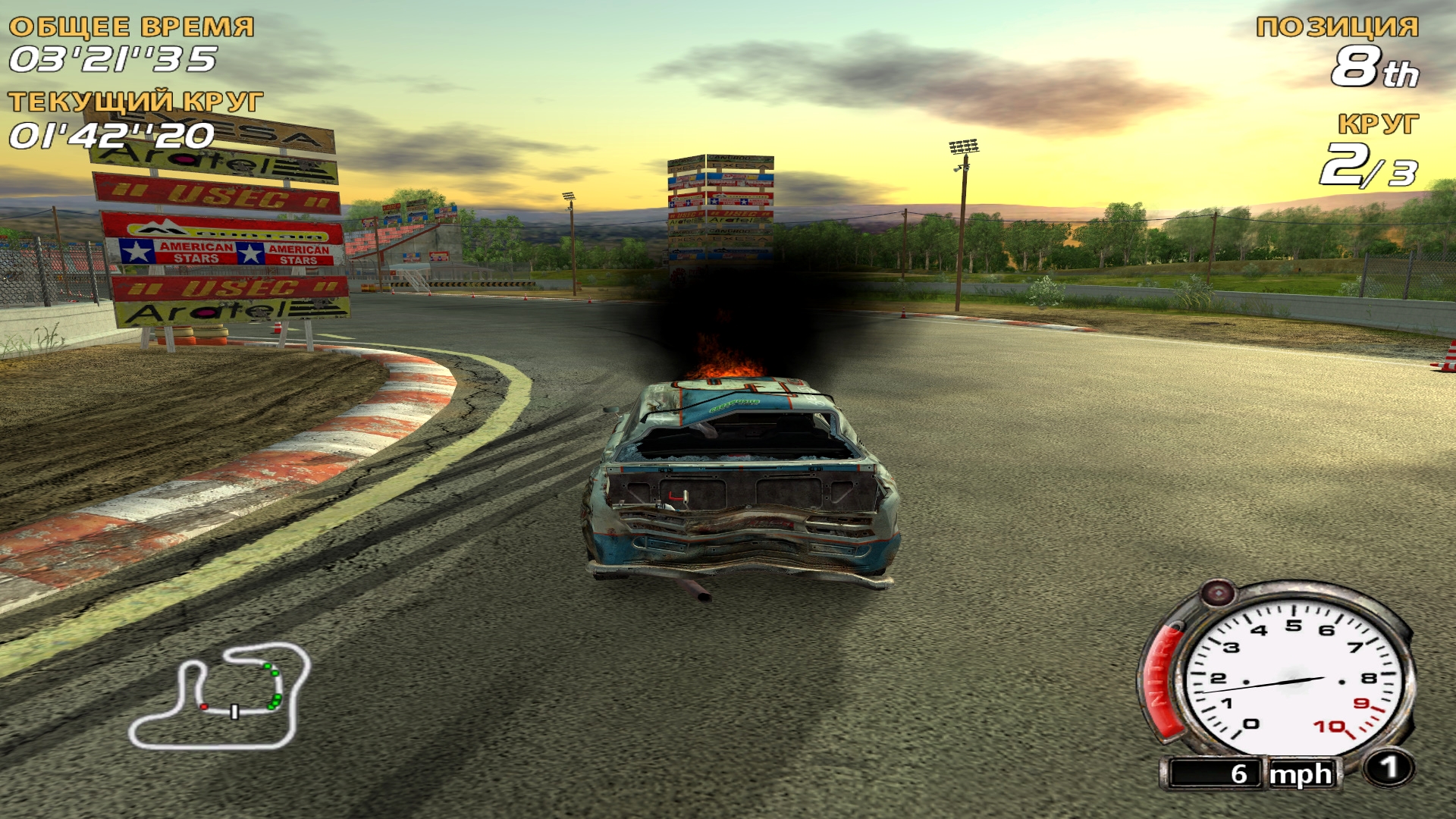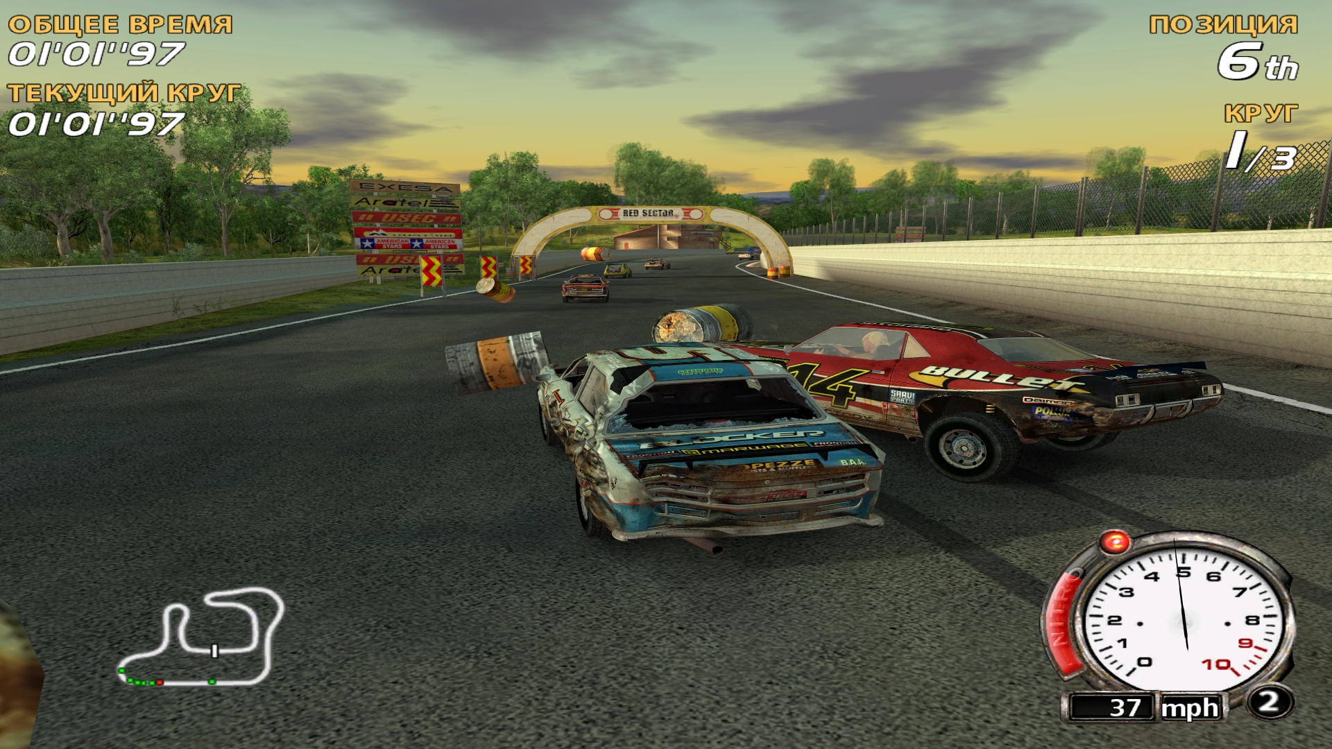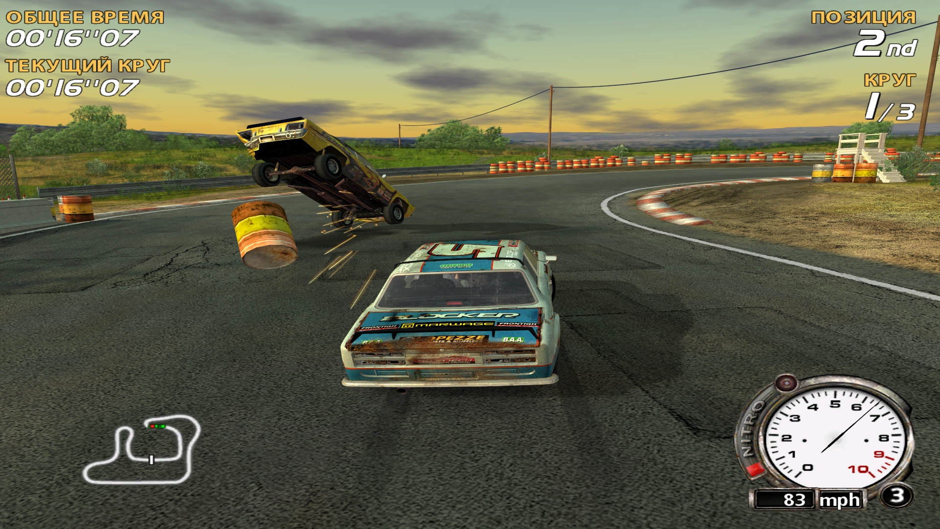 Вторая часть сериала появилась на свет в 2006-ом году. Игра стала немного аркаднее, а физику поведения автомобиля слегка упростили. Помимо старых ржавых развалюх и грунтовых дорог в игру добавили новенькие блестящие автомобили, городские и гоночные трассы. С самого начала игры нам доступна лишь горстка карт и авто, но постепенно, проходя компанию, нам откроются новые трассы и машинки, и это несказанно радовало. Никуда не делись и разрушения, более того, их стало гораздо больше, стало больше взрывов, нашим соперникам создали личности и добавили в любой тип гонок индикатор повреждений соперников. Игра стала красочнее и затягивающее. В плане музыки тоже всё отлично, она идеально подходит под любой тип гонок.
