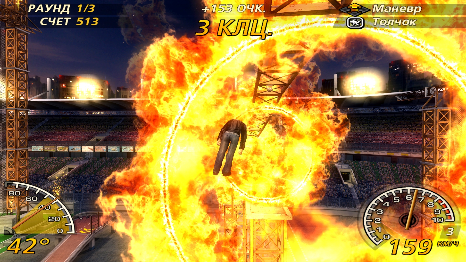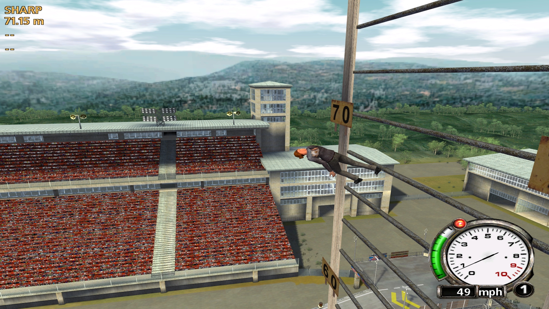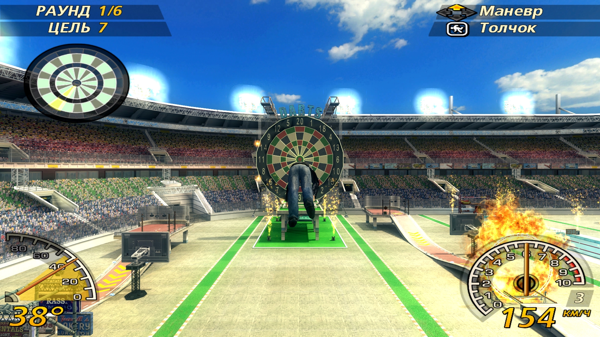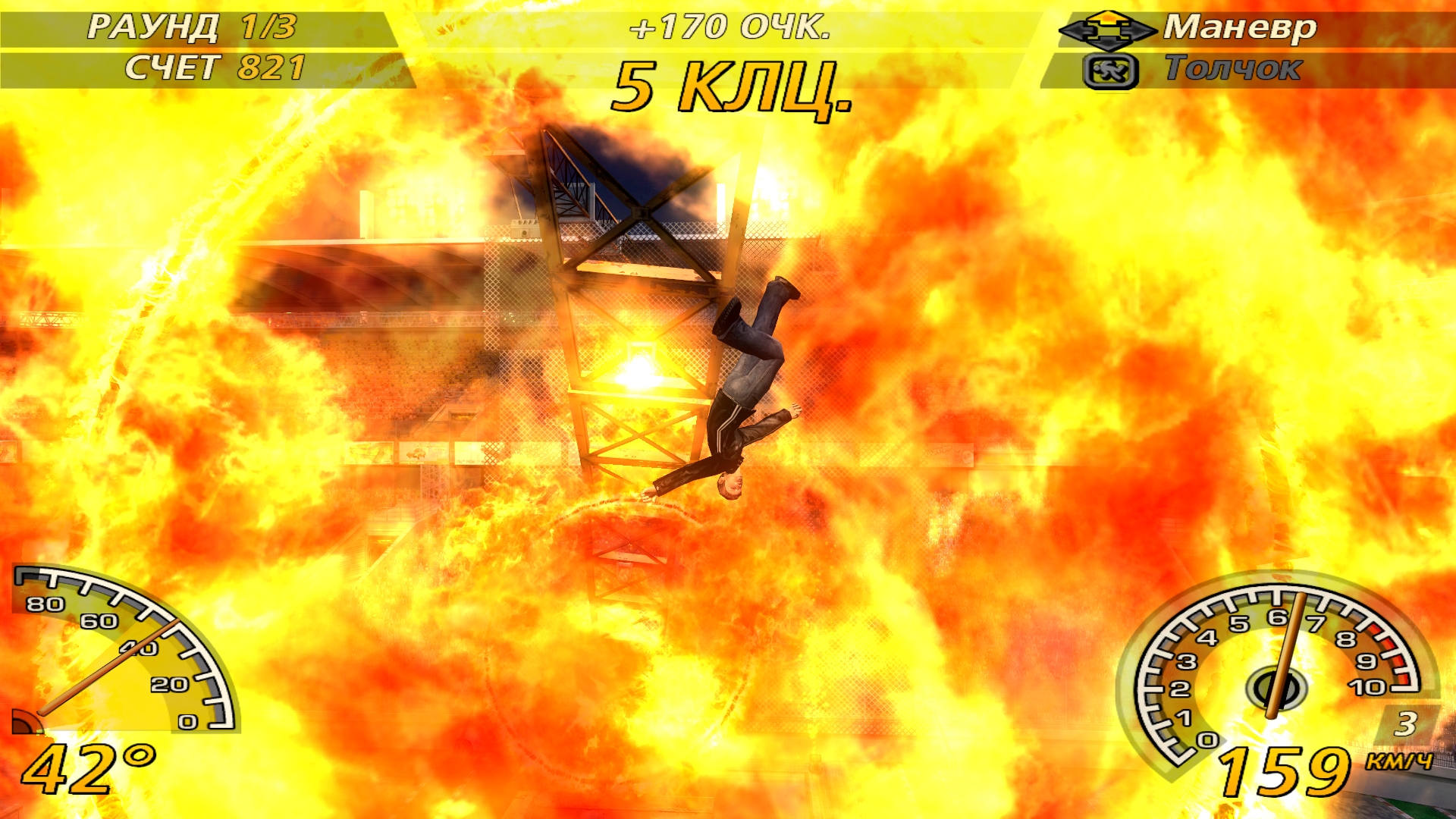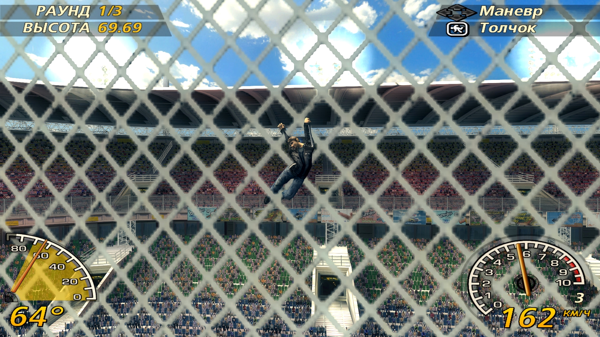 Суть этой мини-игры - разогнаться по прямой линии и, зажав ctrl, запустить нашего водителя, через лобовое стекло, как можно дальше. Как только персонаж коснулся земли, дальность полета останавливается, и как бы далеко вы дальше не катились на пузе - не важно. Чем дальше водитель летит, тем лучше.