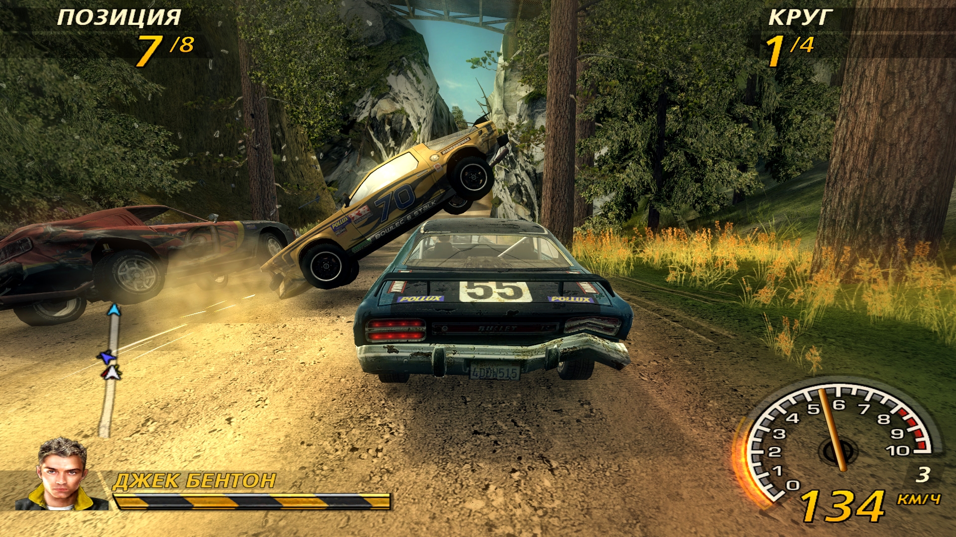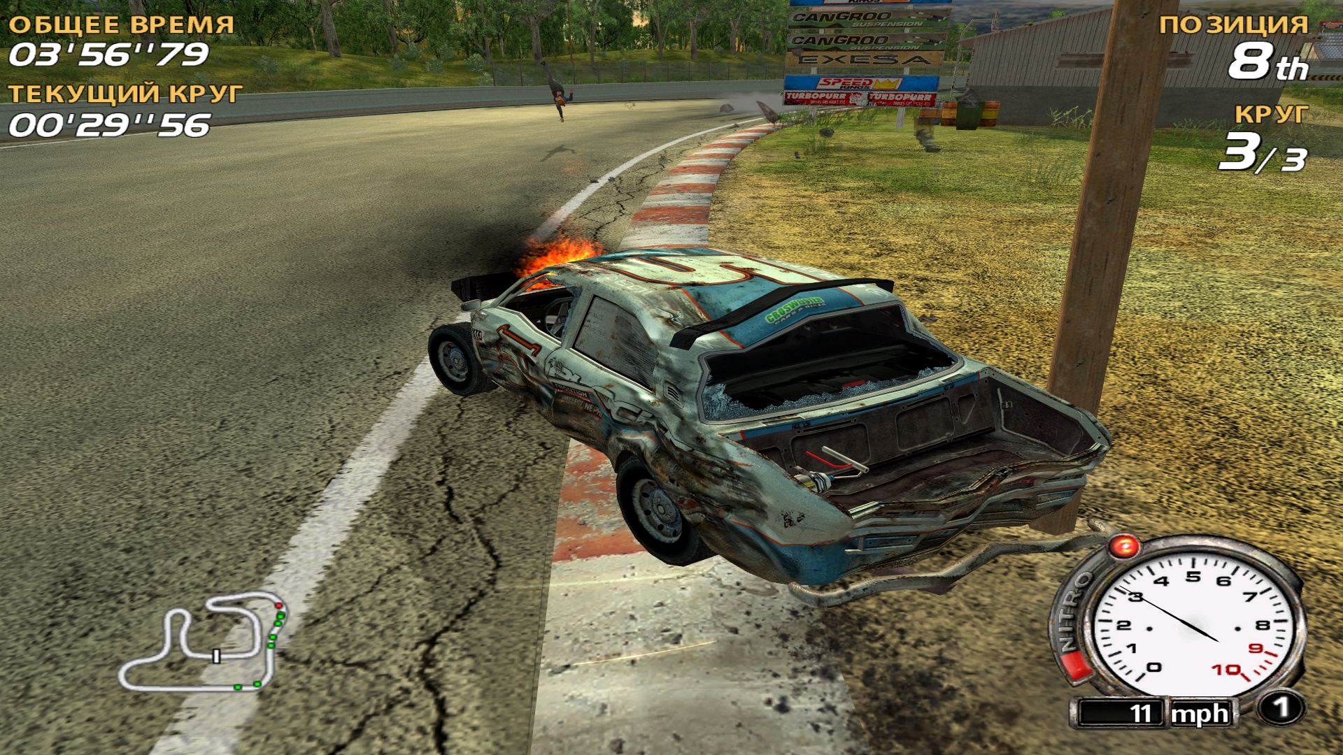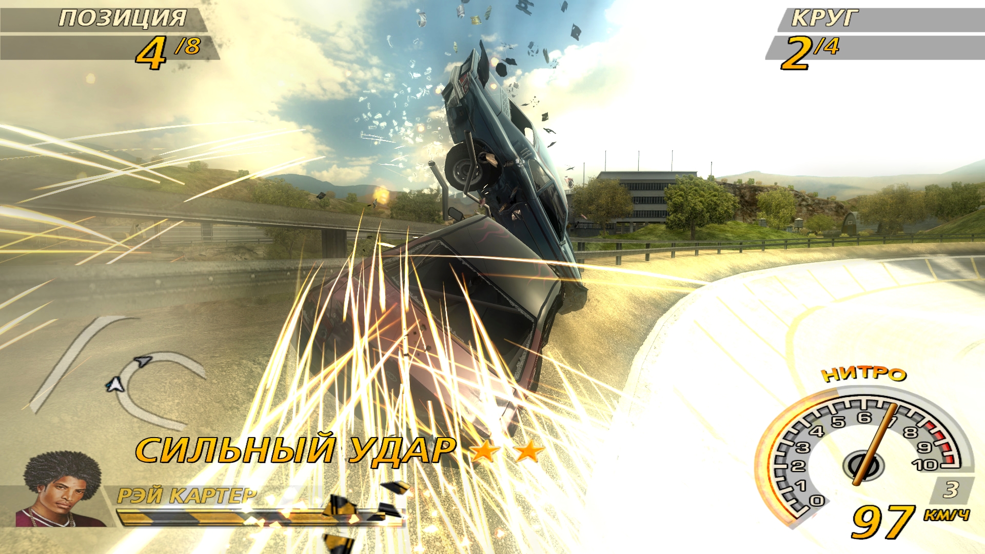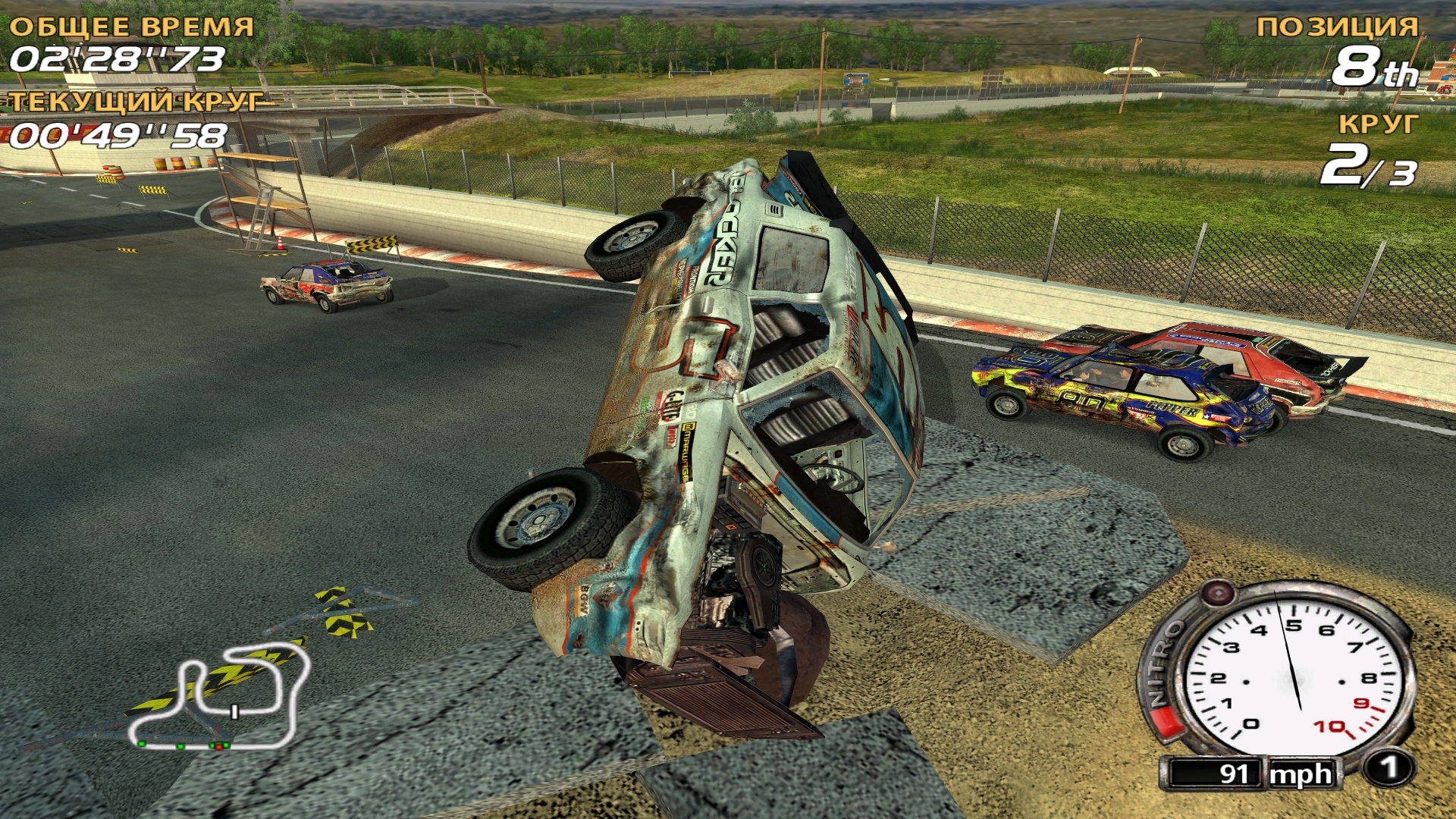 С одной стороны, смотришь, и думаешь, что в это можно даже играть, в сравнении с третьей частью - игра вообще кажется возвращением серии. Машины гнутся, мини-игры по прежнему есть, даже появились новые, всё ломается, мнется, красота... До тех пор, пока не начнешь в неё играть лично. Да, игра может и не плоха, кому-то даже зайдет, но явно не тем, кто играл в прошлые части от оригинальных разработчиков. Повреждения здесь далеко не идеальны, да, помять можно, но не так как раньше, а игра просто насквозь пластиковая. Машины прыгают как Морис, когда его статья собирает десять плюсов, при этом они не имеют абсолютно никакого веса. Меня порадовало с одной стороны то, что на трассе много предметов, которые можно сломать, даже сараи, ворота, да что угодно по сути, но физика мира вообще не оказывает никакого влияния на гонку. Все предметы разлетаются на ура, но вот на машину они тоже никак не влияют, мы даже не теряем ни доли скорости, едем, словно огромный таран. Если в прошлых частях выкинутый на дорогу двигатель от самолета мог сломать жизнь всем игрокам, заборы нас затормаживали, разбросанные по локации камни приносили нам серьезный урон и гемор, то здесь, даже машины, что стоят у обочины, летают словно бейсбольные мячики, и это совсем не круто.