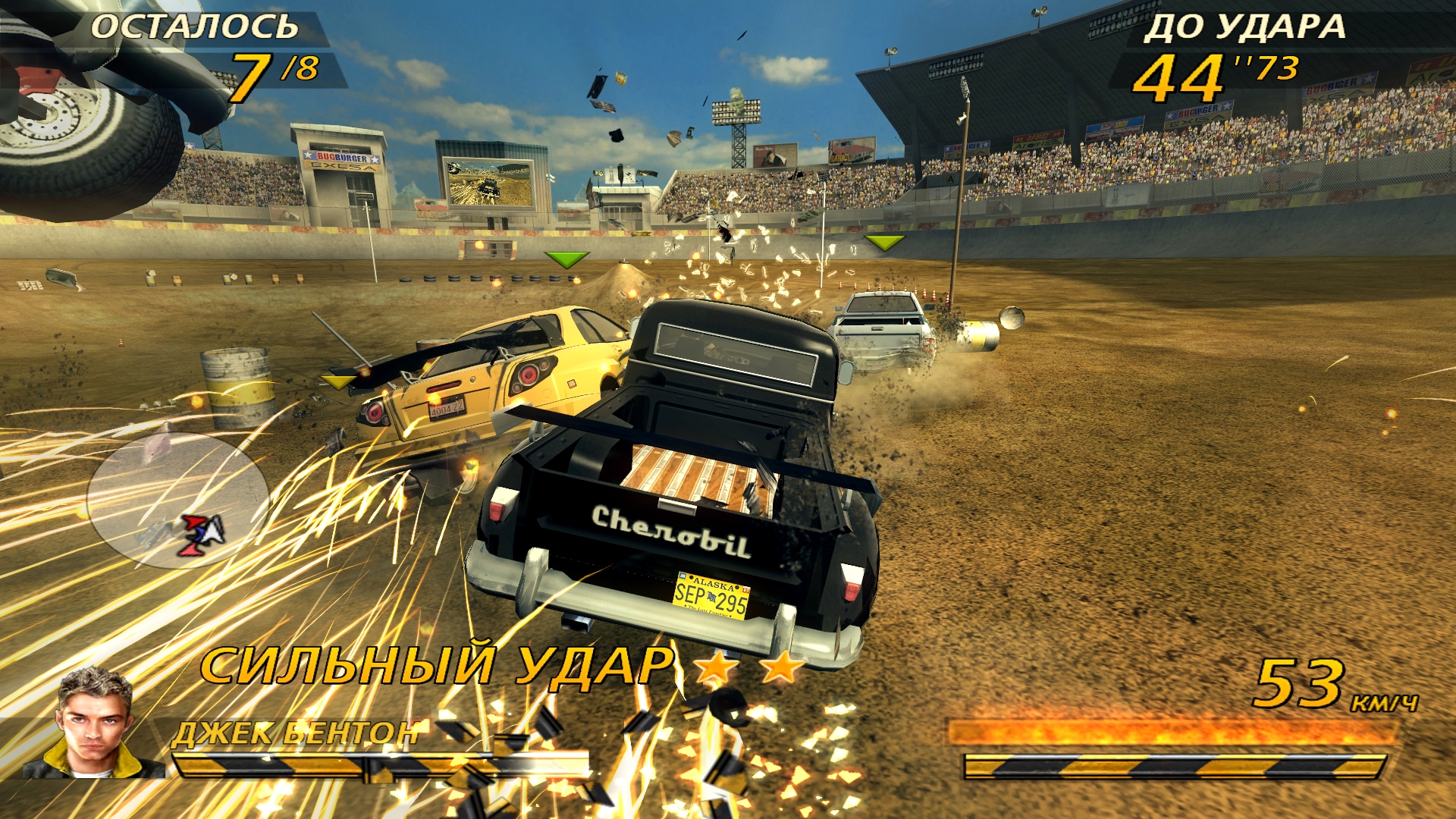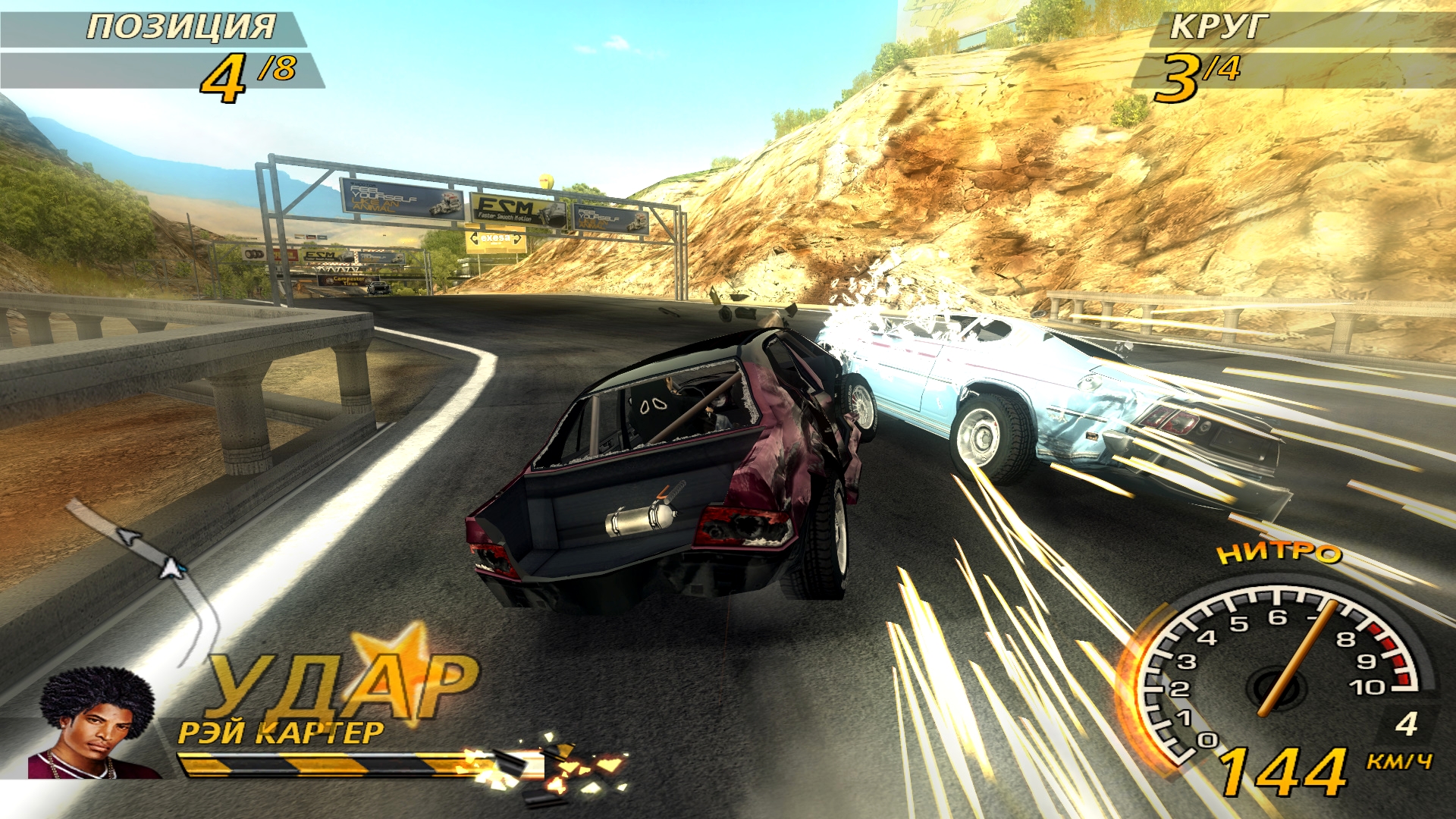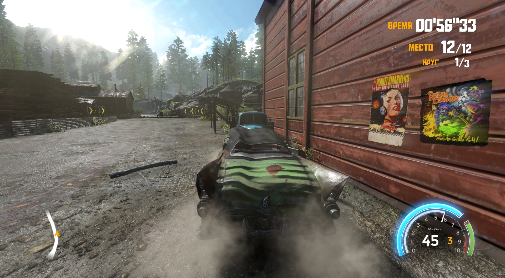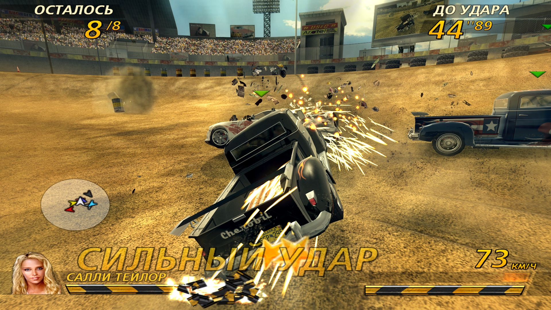 С одной стороны, смотришь, и думаешь, что в это можно даже играть, в сравнении с третьей частью - игра вообще кажется возвращением серии. Машины гнутся, мини-игры по прежнему есть, даже появились новые, всё ломается, мнется, красота... До тех пор, пока не начнешь в неё играть лично. Да, игра может и не плоха, кому-то даже зайдет, но явно не тем, кто играл в прошлые части от оригинальных разработчиков. Повреждения здесь далеко не идеальны, да, помять можно, но не так как раньше, а игра просто насквозь пластиковая. Машины прыгают как Морис, когда его статья собирает десять плюсов, при этом они не имеют абсолютно никакого веса. Меня порадовало с одной стороны то, что на трассе много предметов, которые можно сломать, даже сараи, ворота, да что угодно по сути, но физика мира вообще не оказывает никакого влияния на гонку. Все предметы разлетаются на ура, но вот на машину они тоже никак не влияют, мы даже не теряем ни доли скорости, едем, словно огромный таран. Если в прошлых частях выкинутый на дорогу двигатель от самолета мог сломать жизнь всем игрокам, заборы нас затормаживали, разбросанные по локации камни приносили нам серьезный урон и гемор, то здесь, даже машины, что стоят у обочины, летают словно бейсбольные мячики, и это совсем не круто.