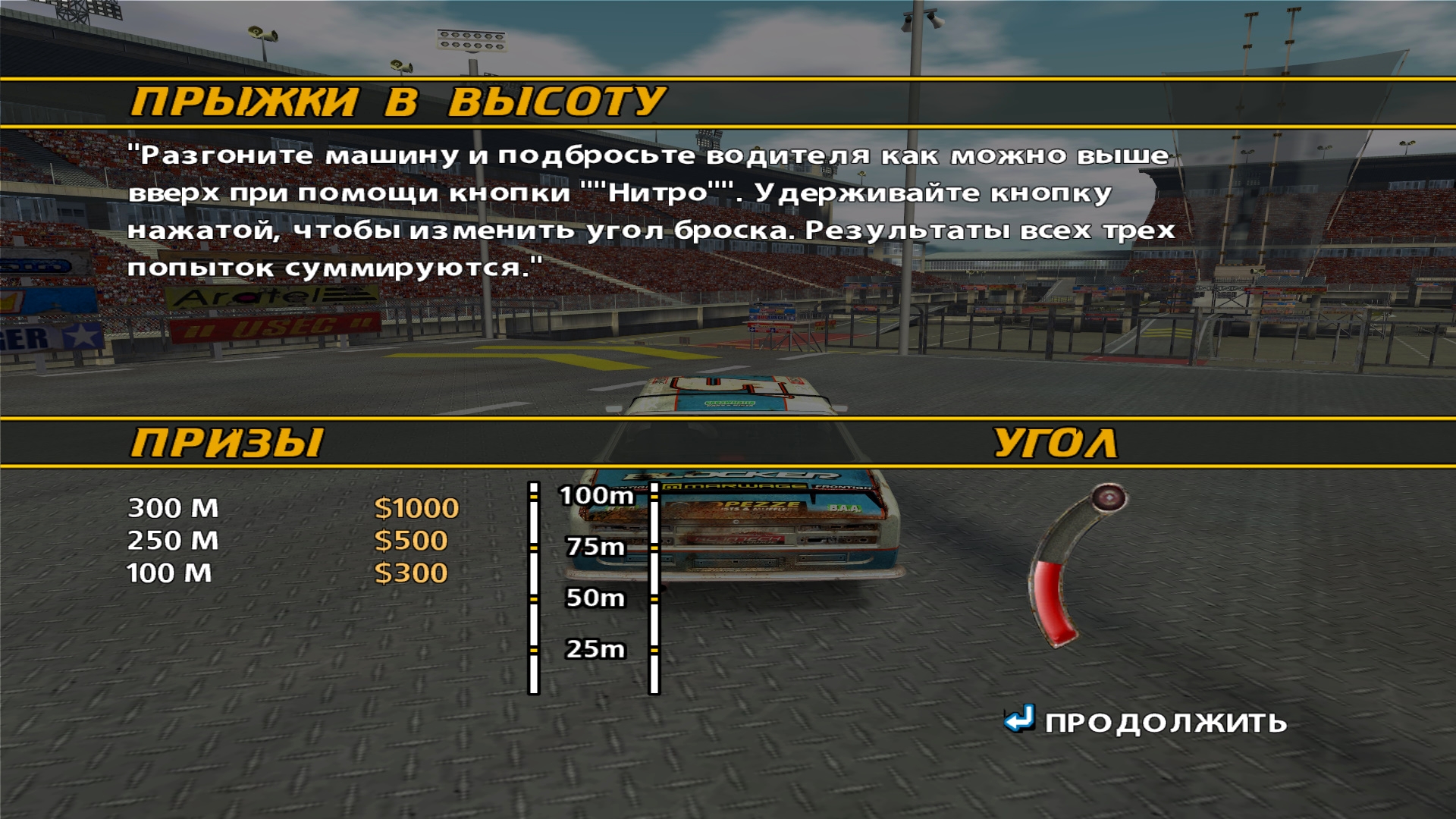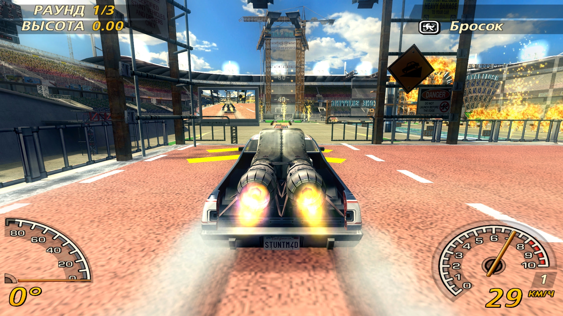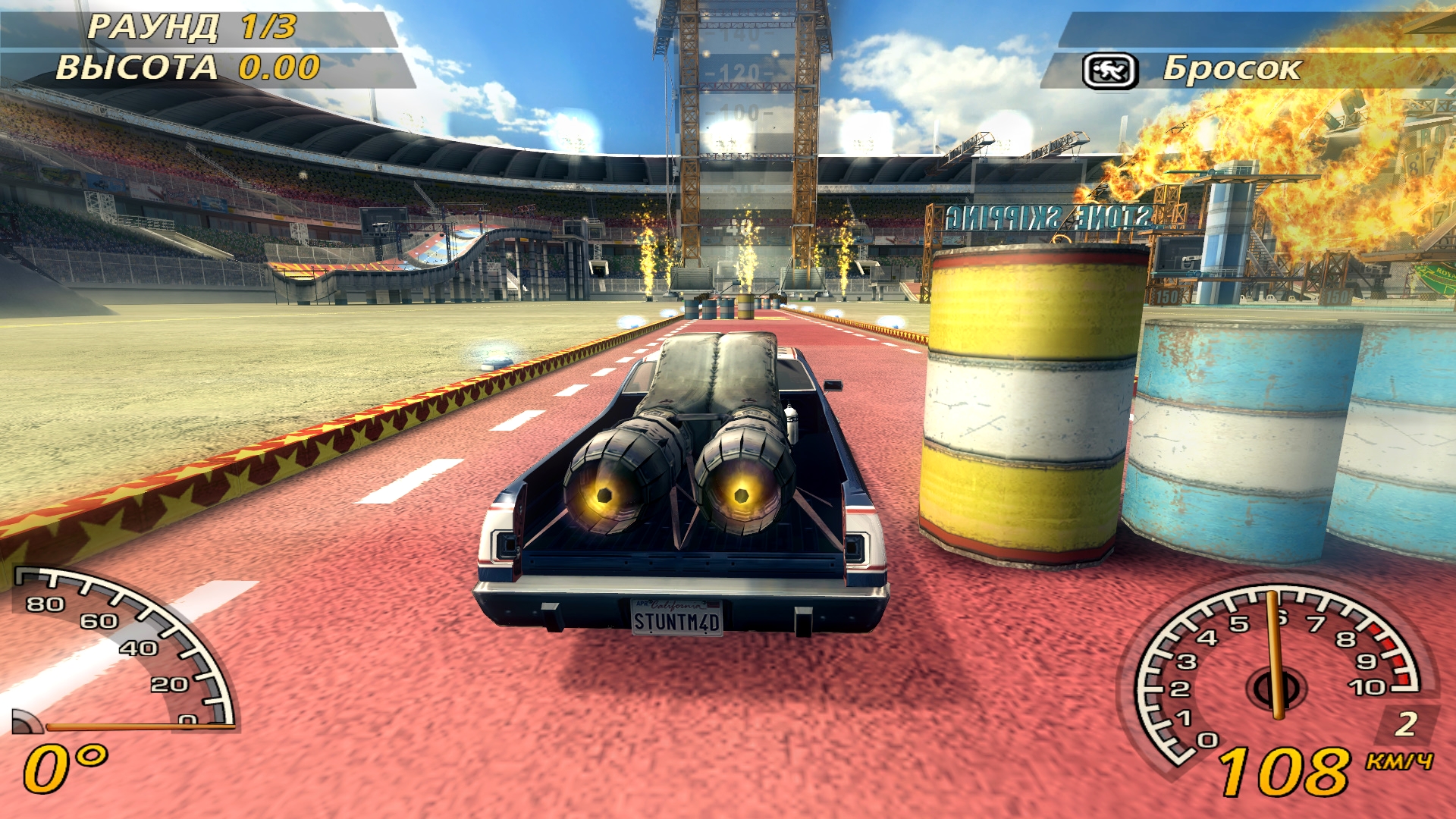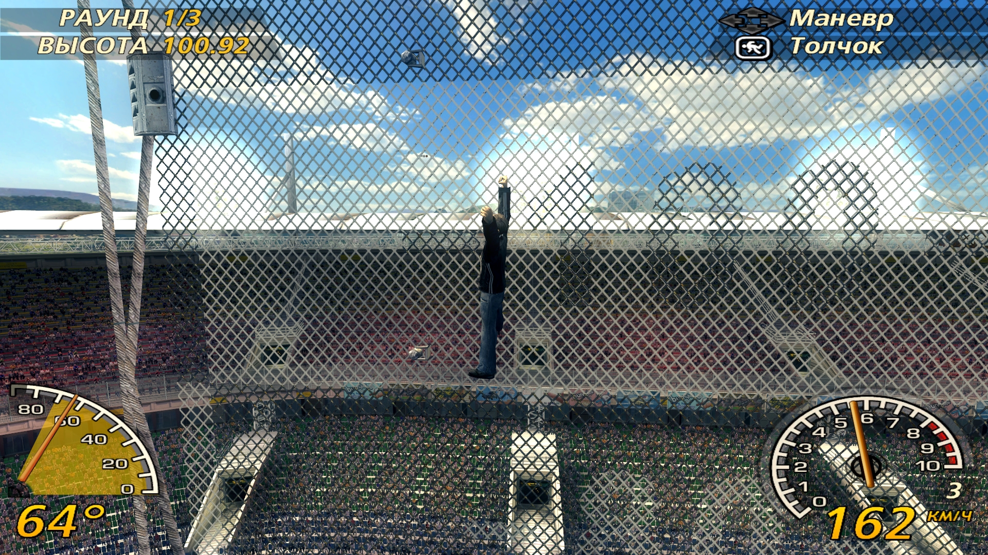 Принцип этого режима почти не отличается от прошлого. Нужно разогнаться на машине, и, в нужный момент, запустить водителя в высоту. Чем выше вы это сделаете - тем лучше. Очки в итоге суммируются.