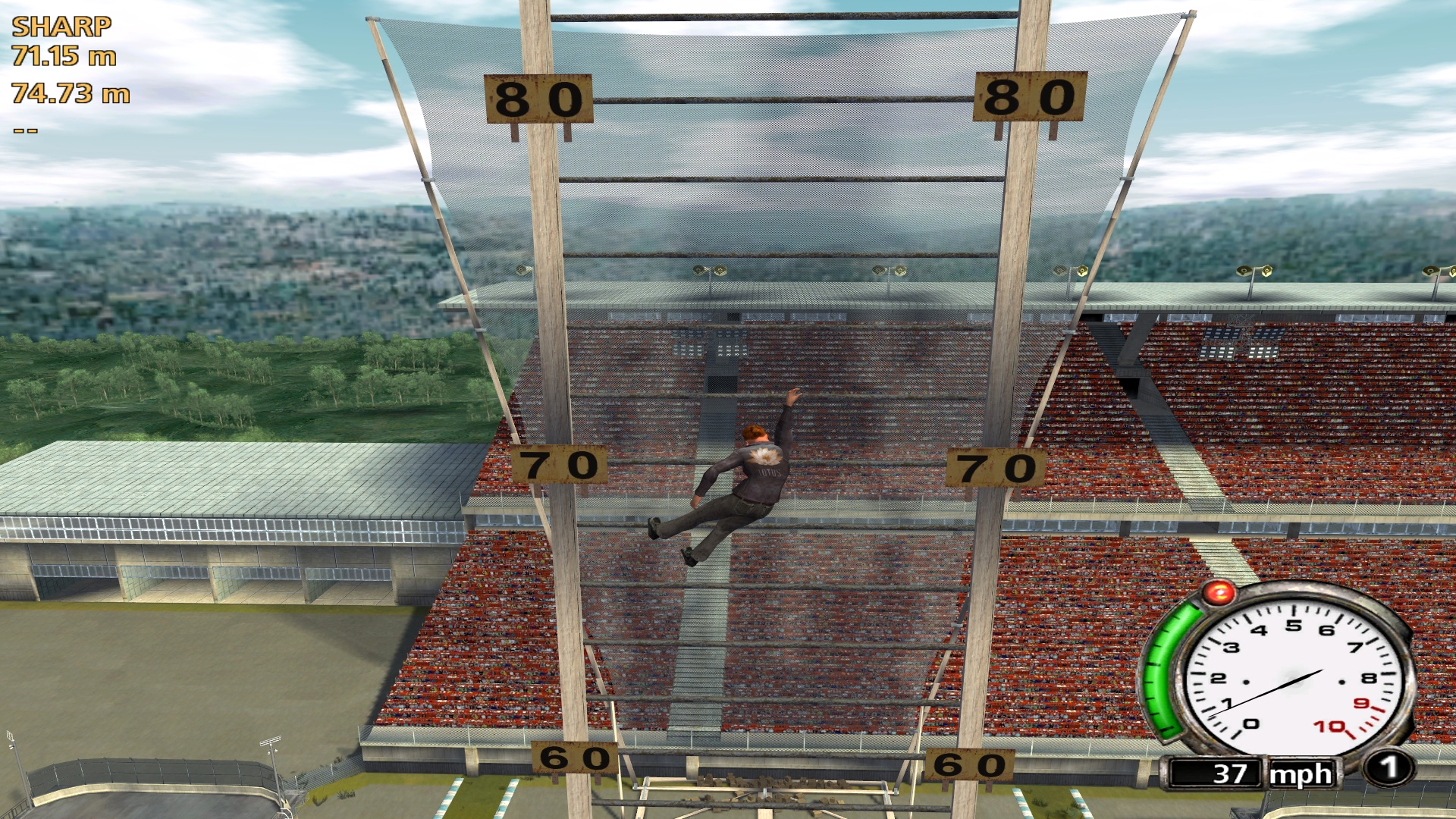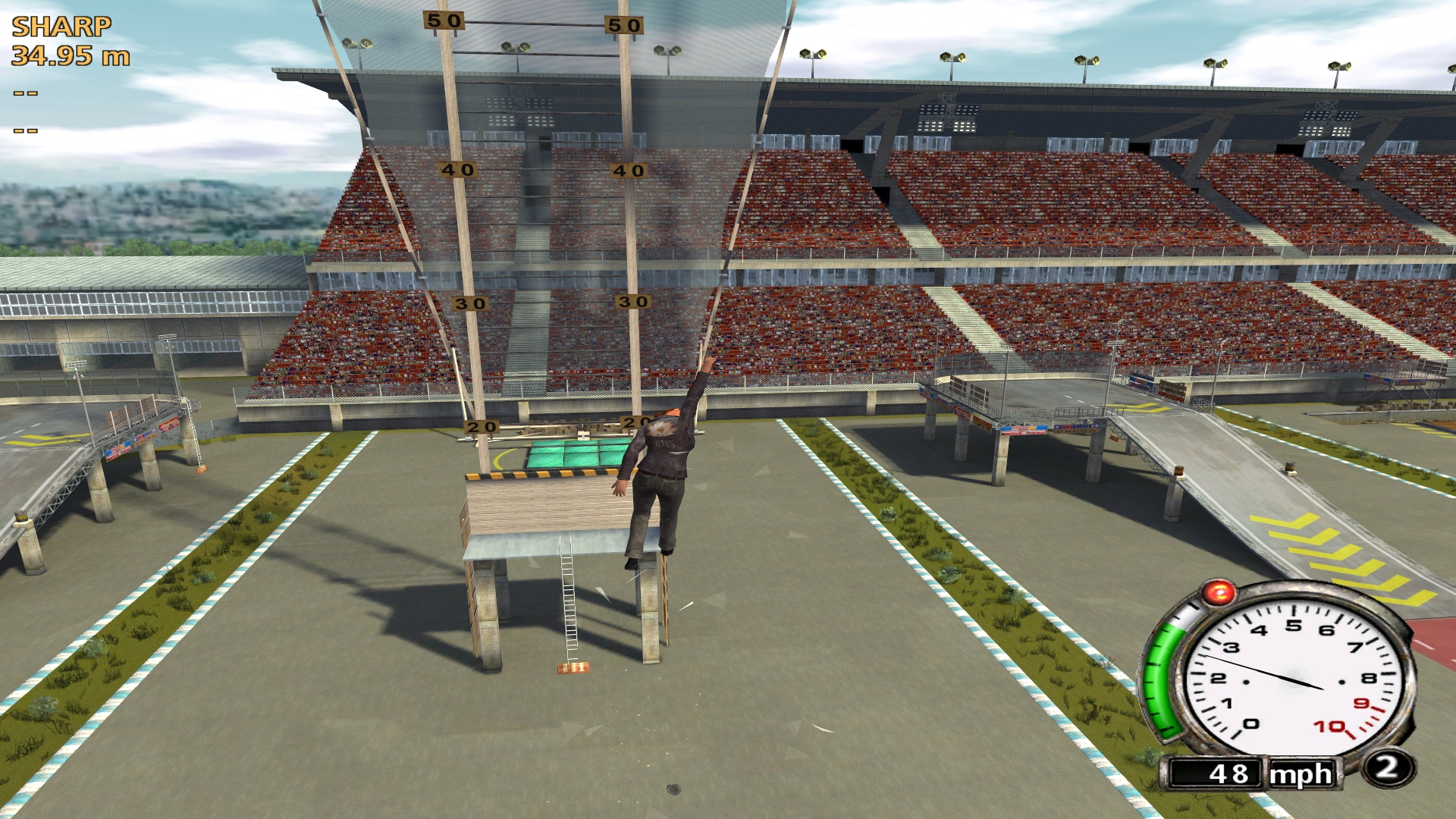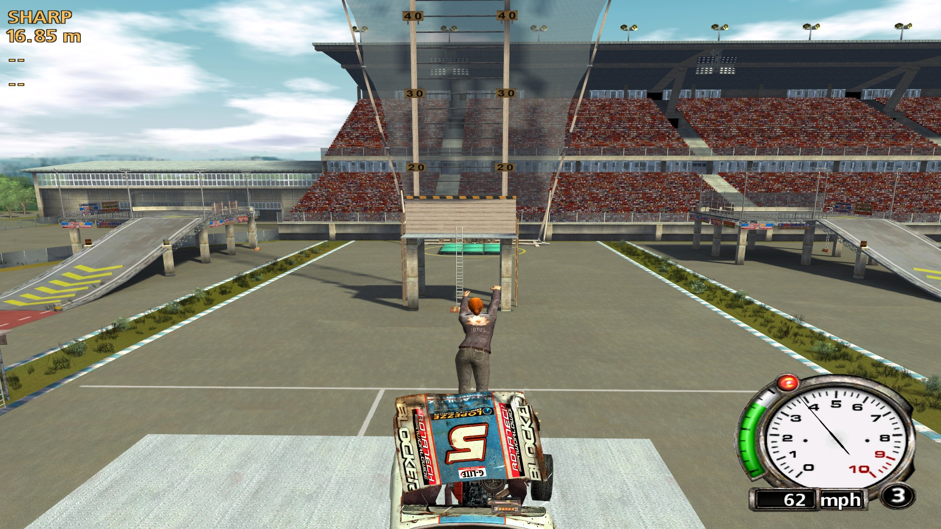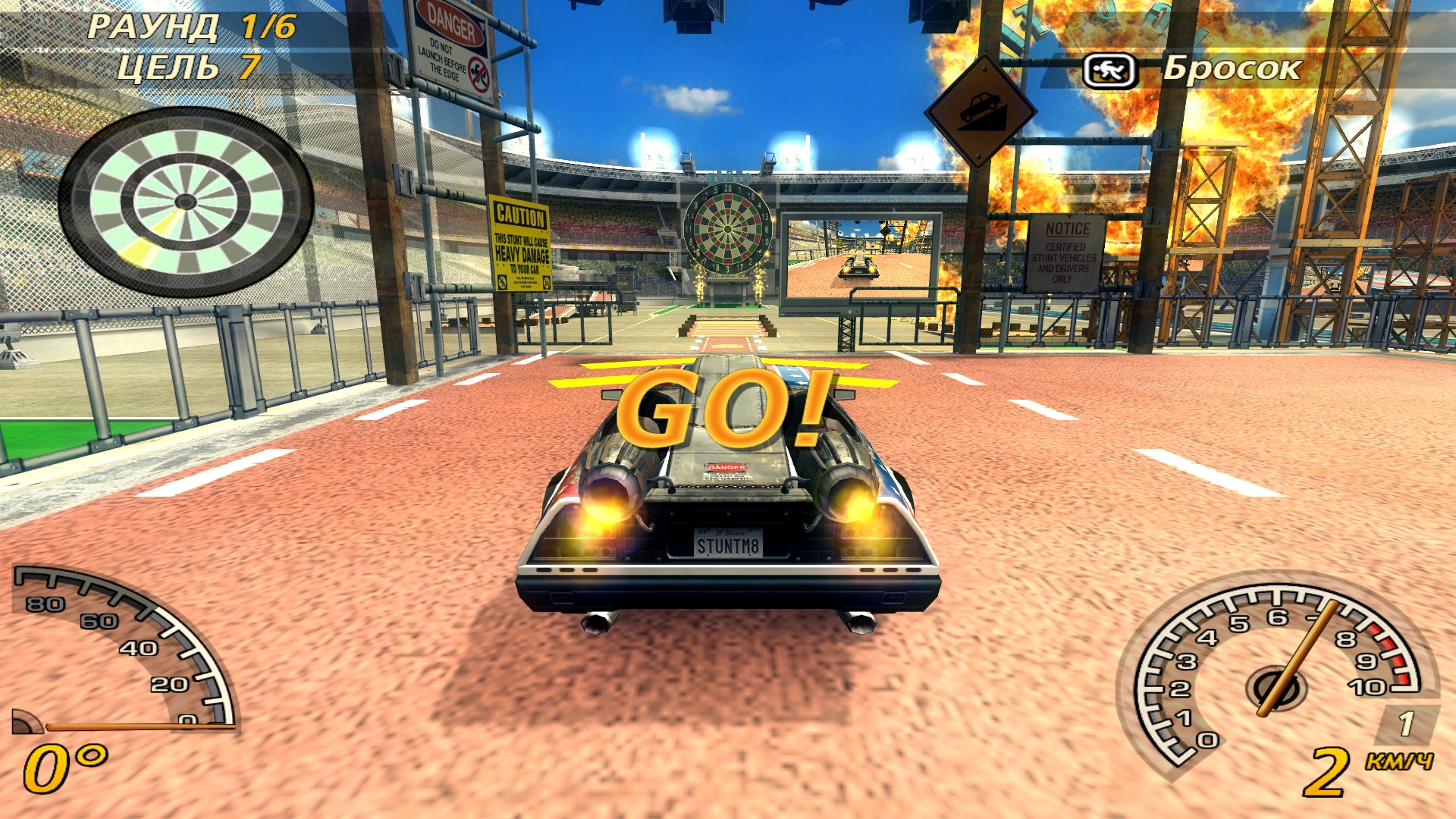 Принцип этого режима почти не отличается от прошлого. Нужно разогнаться на машине, и, в нужный момент, запустить водителя в высоту. Чем выше вы это сделаете - тем лучше. Очки в итоге суммируются.