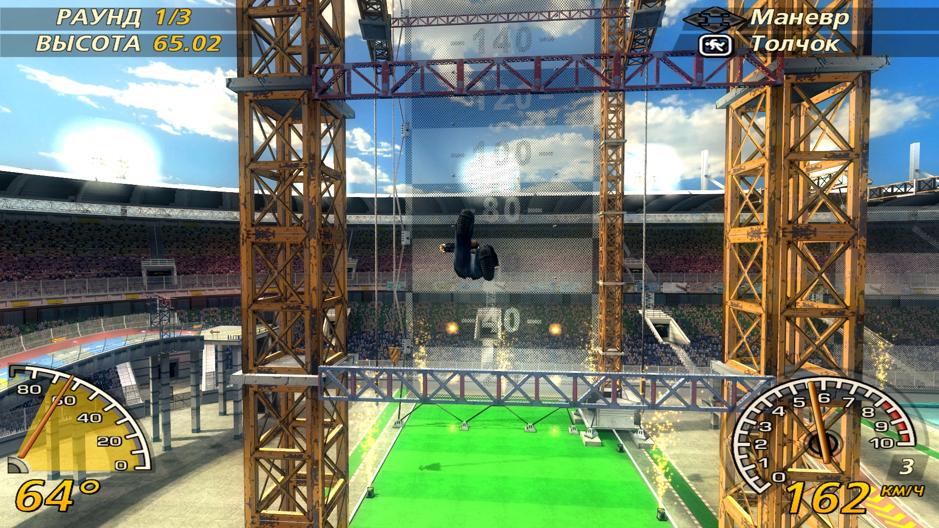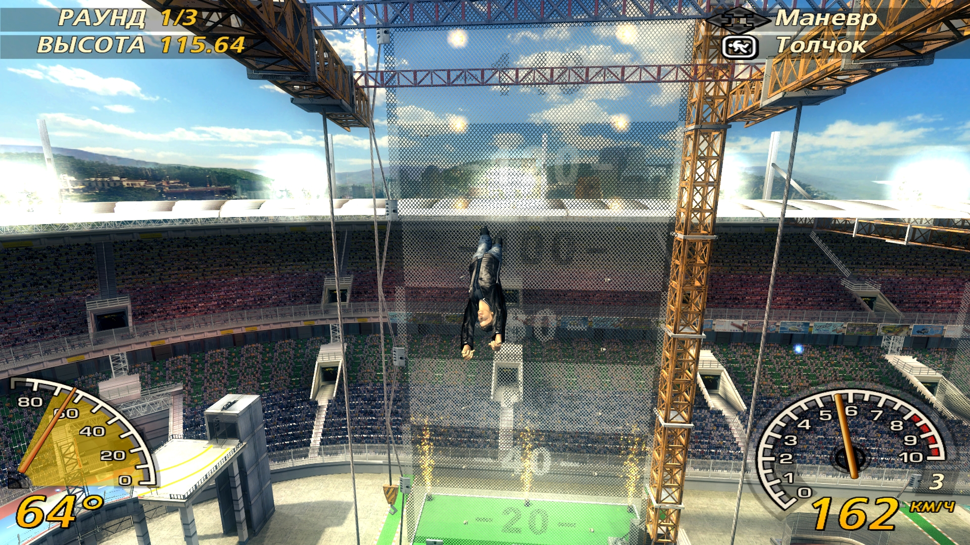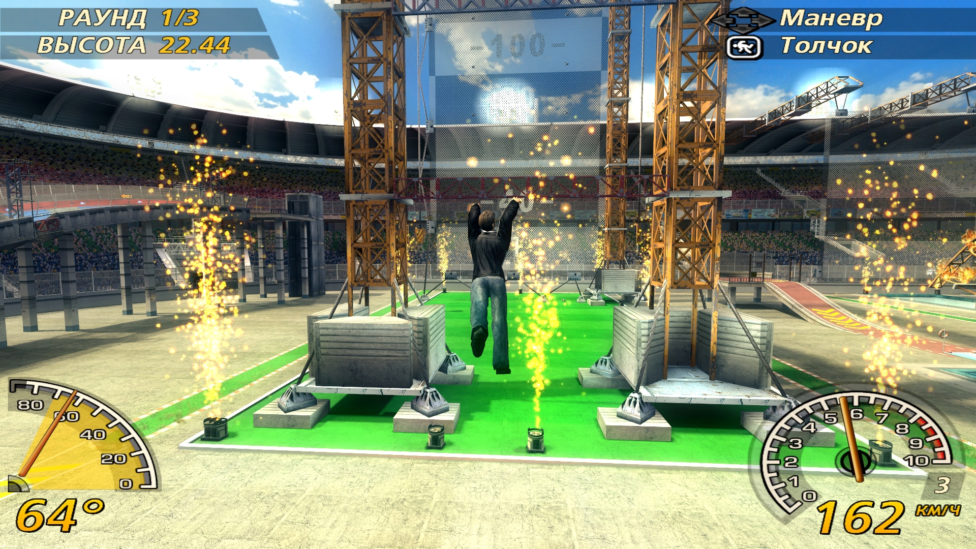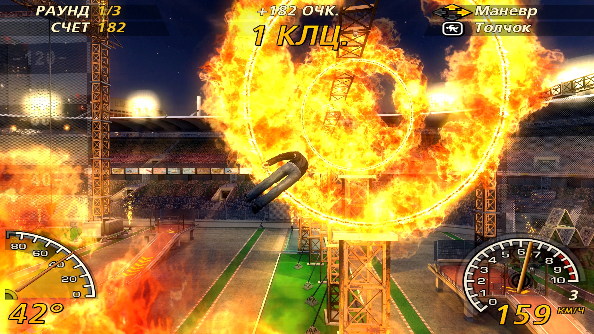 Принцип этого режима почти не отличается от прошлого. Нужно разогнаться на машине, и, в нужный момент, запустить водителя в высоту. Чем выше вы это сделаете - тем лучше. Очки в итоге суммируются.
