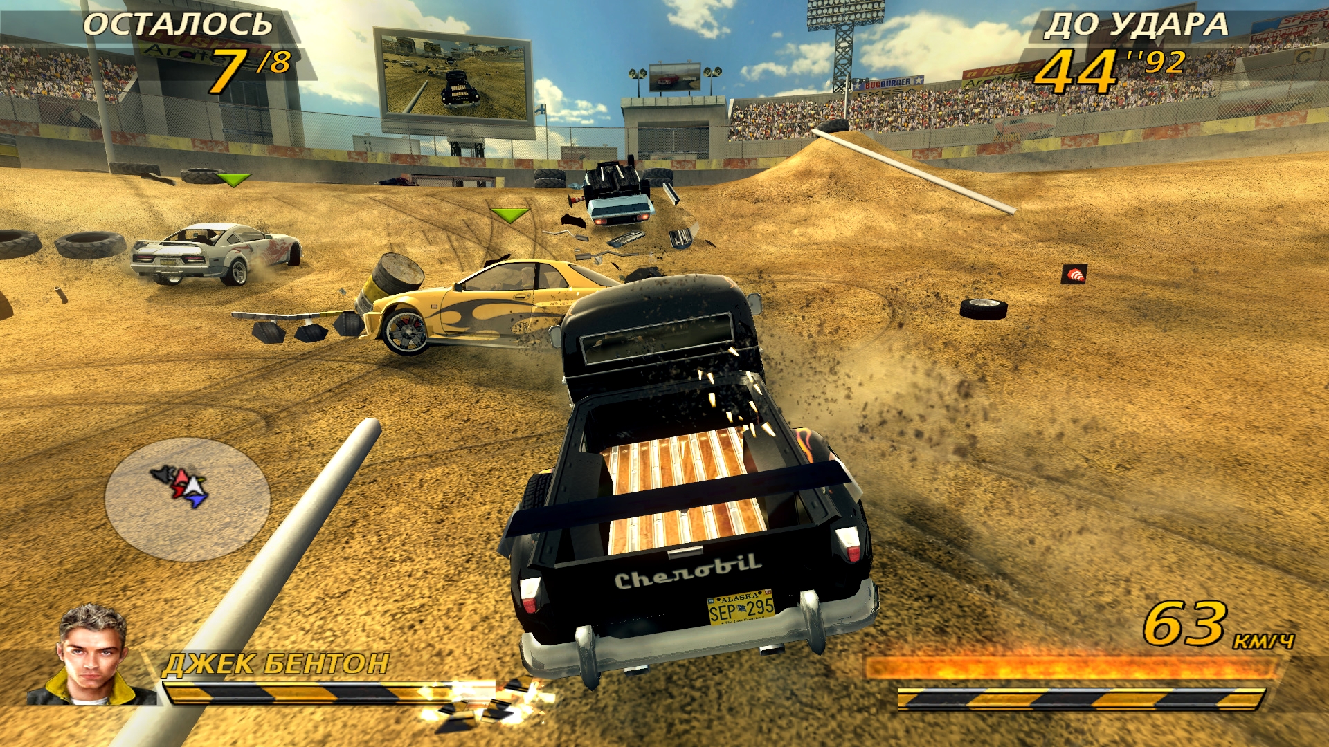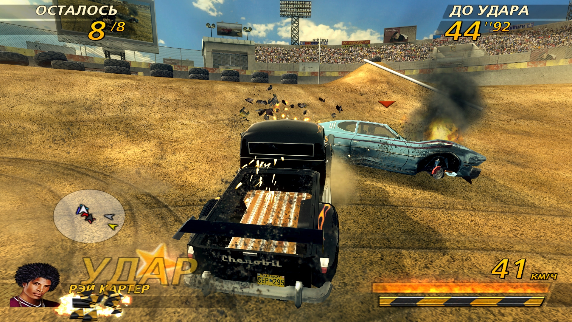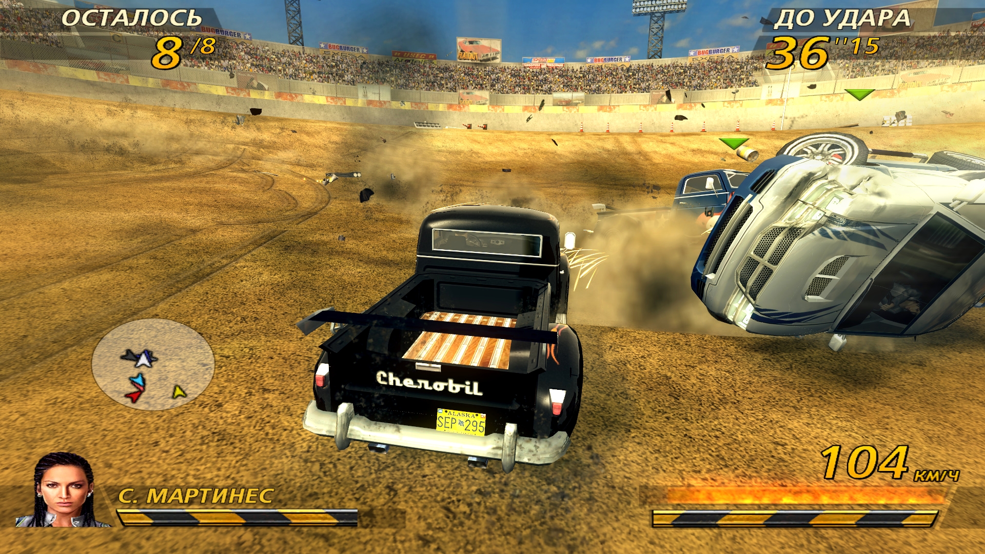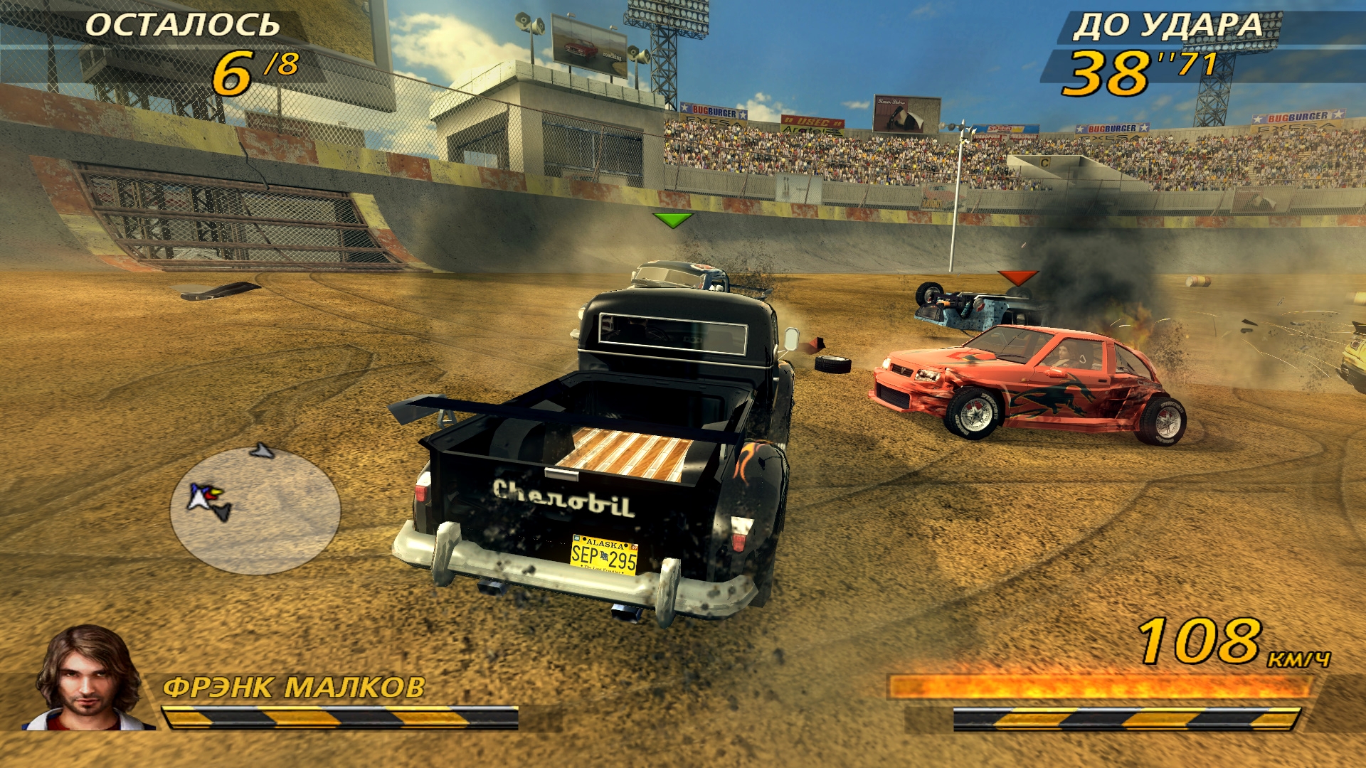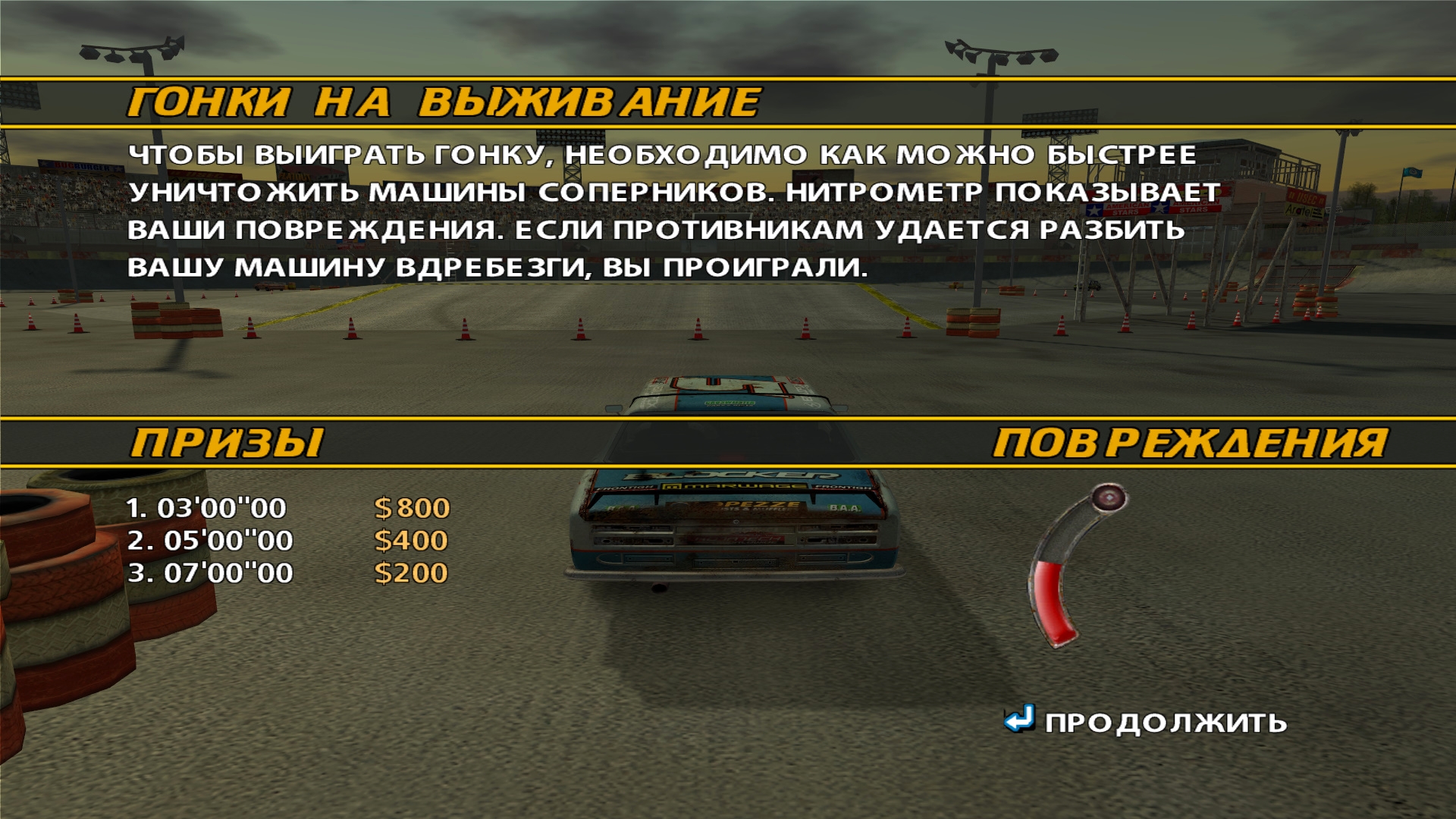 Думаю, этот режим знаком многим, даже не игравшим в эту часть, ведь именно тут всё началось и продолжилось в следующих проектах. Режим «дерби» представлял из себя битву на выживание. Все машины, что есть на карте, должны друг друга таранить. Если в этой металлорубке вы выжили, вы победили. Но это не так просто, как может показаться с первого взгляда.