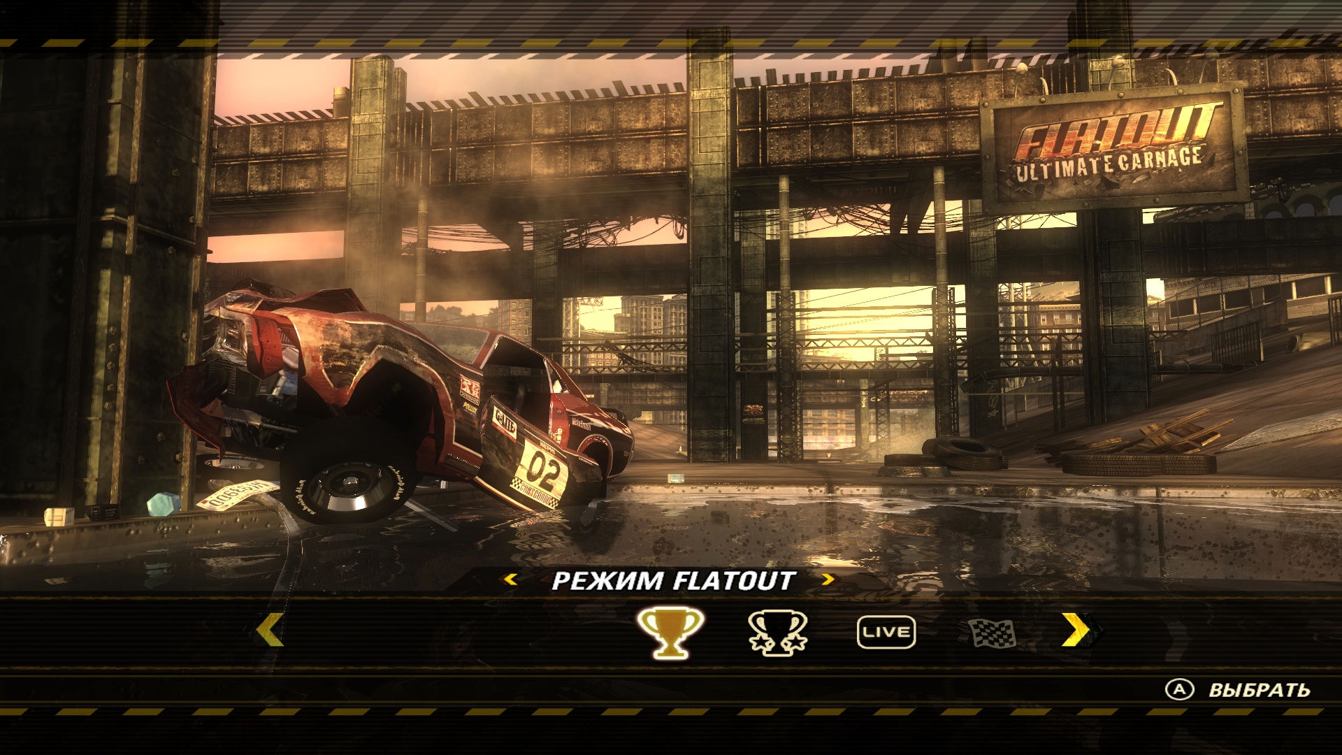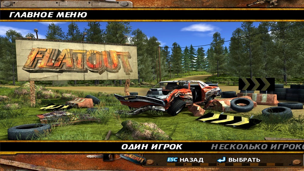 Первая часть из серии вышла в далеком 2004-ом году. Разработала её студия Bugbear Entertainment. И... это была нереально крутая игра. Даже сейчас не ощущаешь, что это что-то древнее, эта гонка выглядит достойно, красиво и красочно, огромные жирные пиксели не лезут в глаза, эта игра совершенно не выглядит на свой год, она значительно опередила время, и этим, пожалуй, произвела фурор на рынке гонок. Flatout никогда не была обычной покатушкой, это не супер тюнинг авто, куча обвесов и езда по ночным улицам, эта гонка безжалостна, все, что в ней есть, это адреналин, скрежет металла, звук разбитого стекла, когда поцеловав столб, водитель вылетал через лобовое стекло. Эта игра была моей первой гонкой, купленной на РС. Представьте моё удивление, когда в то время я её запустил, и увидел, что абсолютно любой автомобиль можно разнести в клочья. Когда машины мялись как баночки из под газировки, и смять можно абсолютно всё. Физика совсем отдельная тема. В игре два режима, легкий и профессиональный. Легкий, практически никак не влияет на поведение соперников, они и так хороши, но боже, что происходило с автомобилем! При включении режима «профессиональный» в физике появлялись такие понятия, как инерция, центробежная сила и многое другое. Это очень круто, а самое главное, что не многие современные проекты могут похвастаться такими поломками, физикой и умным ИИ.
