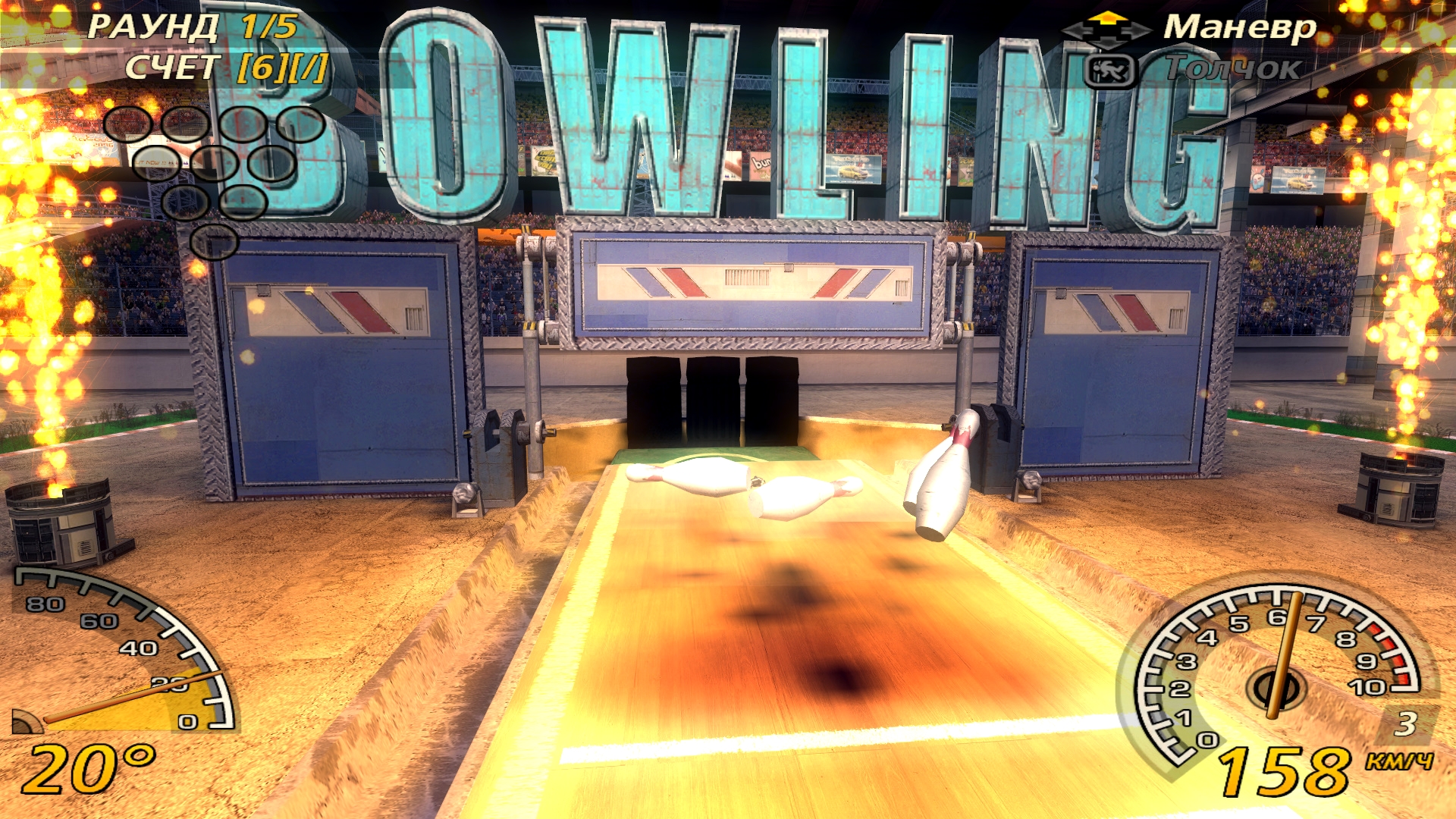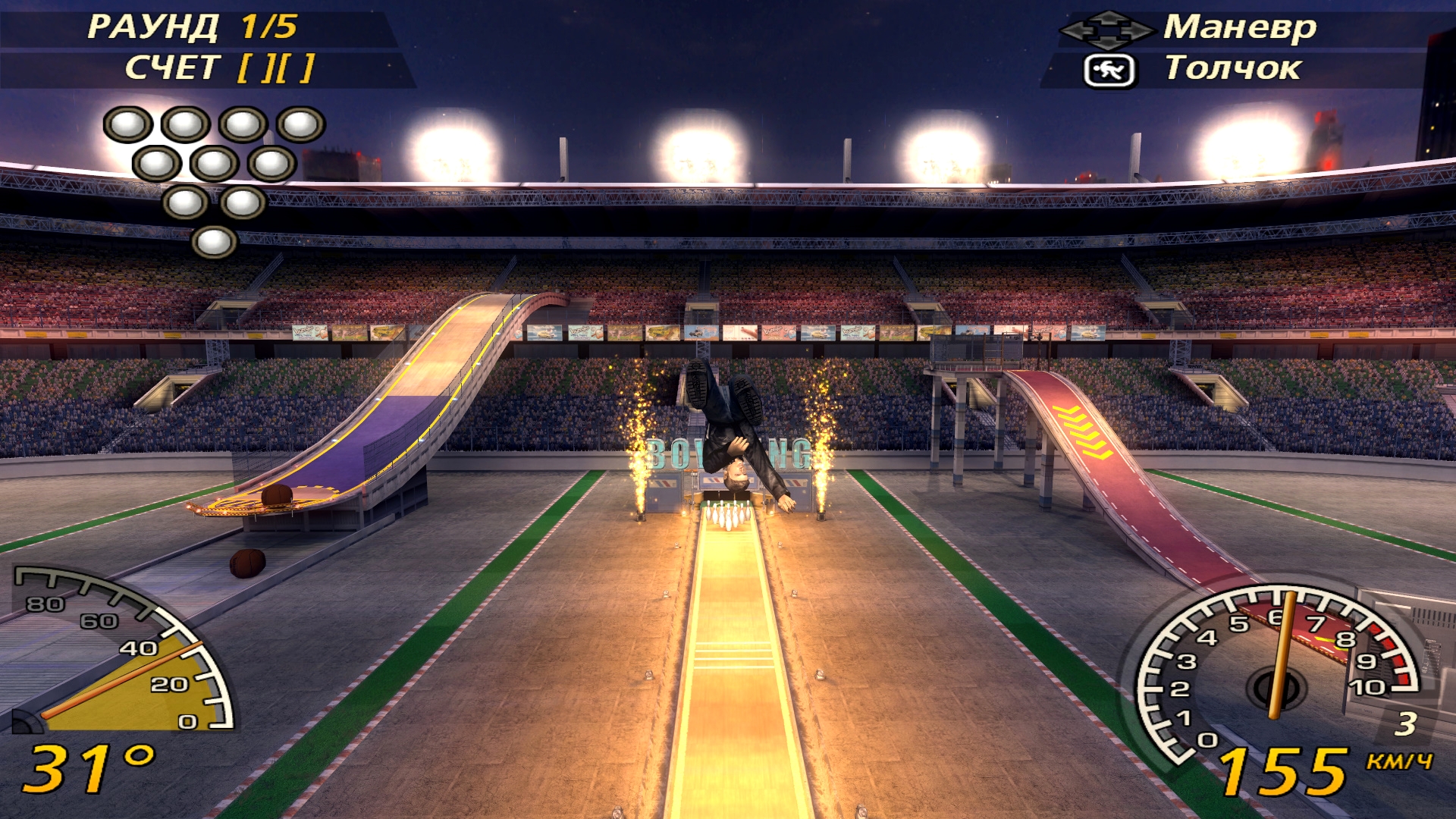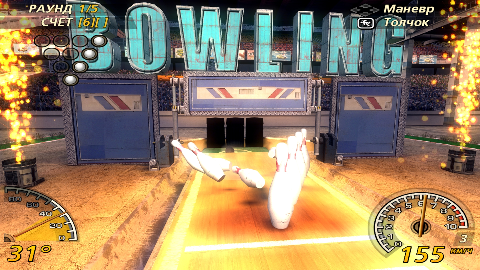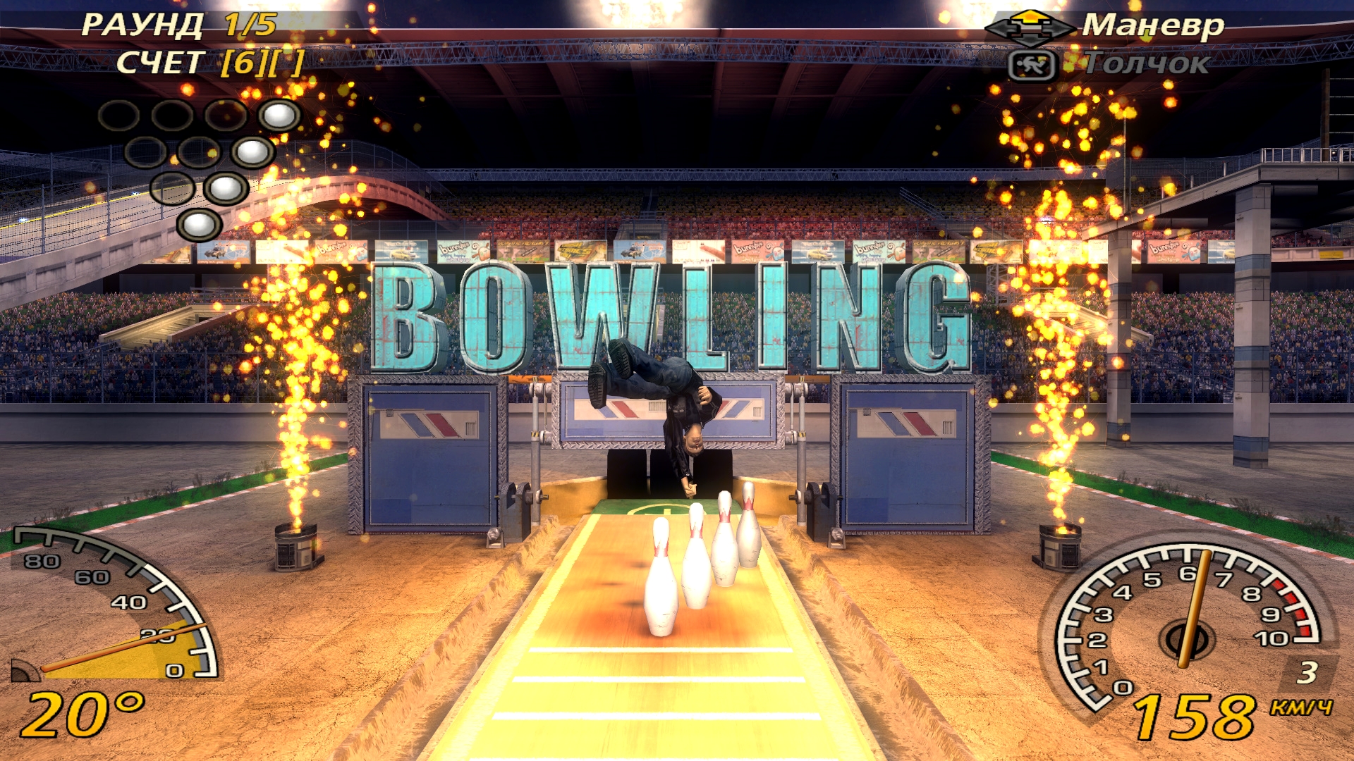 Мини-игры: запуск водителя в воздух, боулинг, запах жаренного мяса