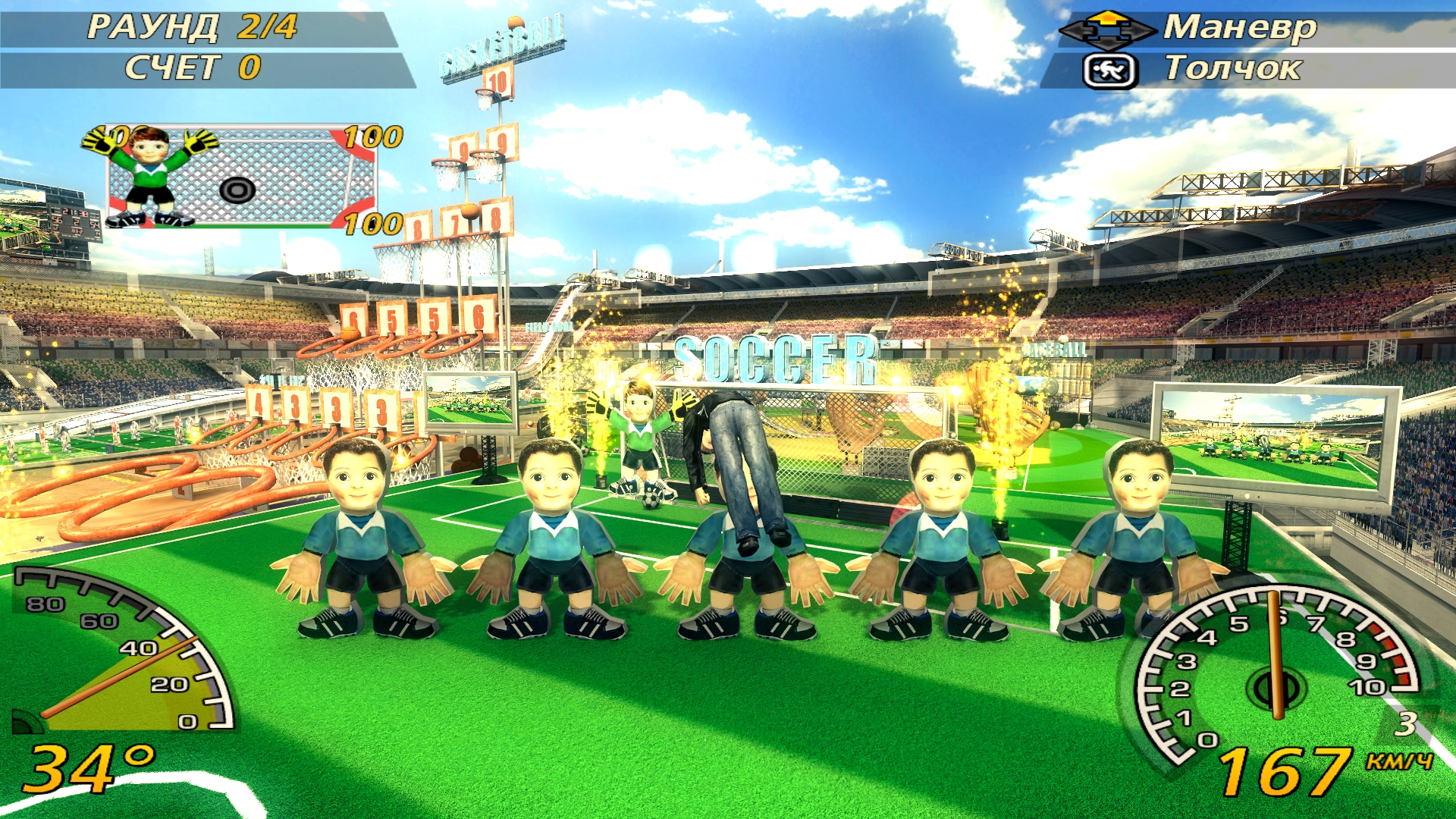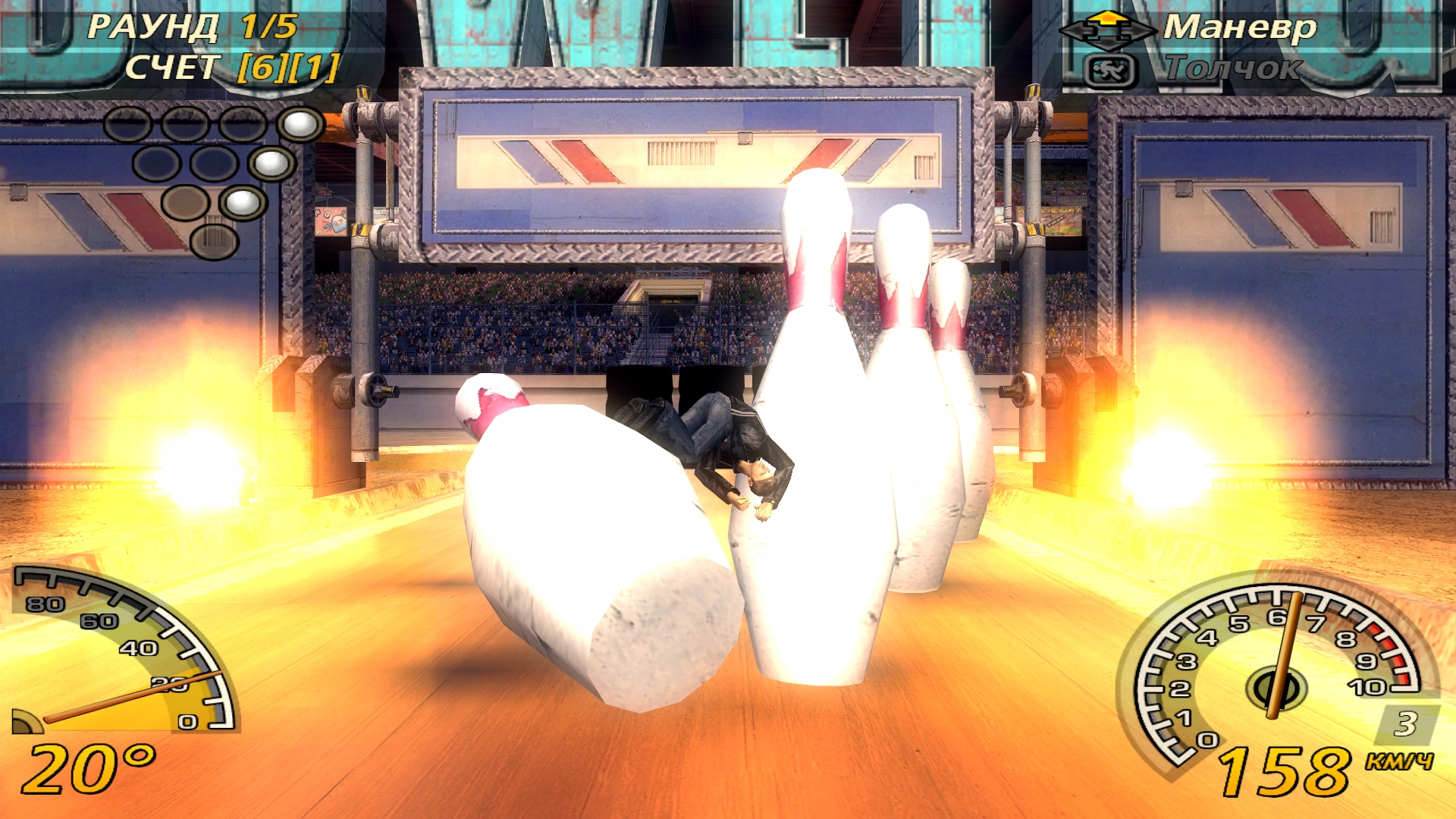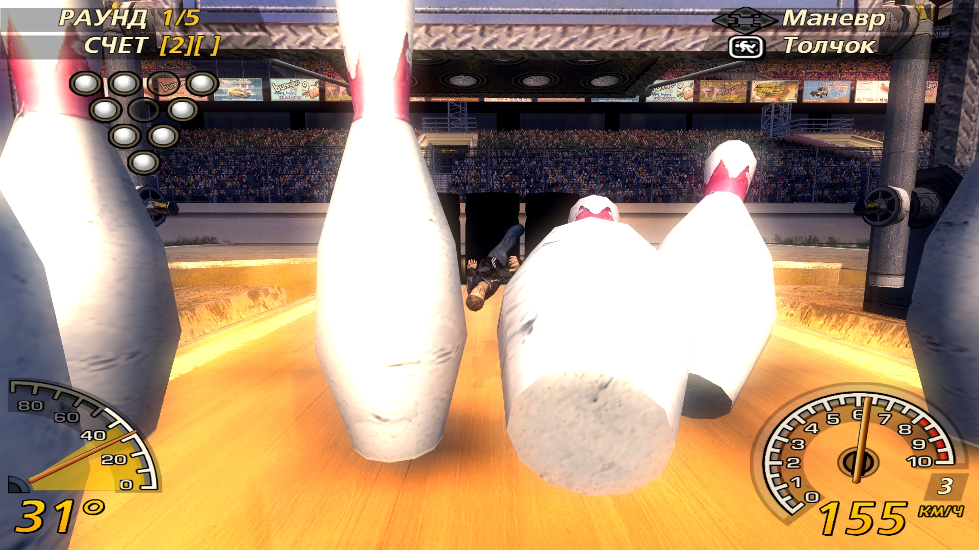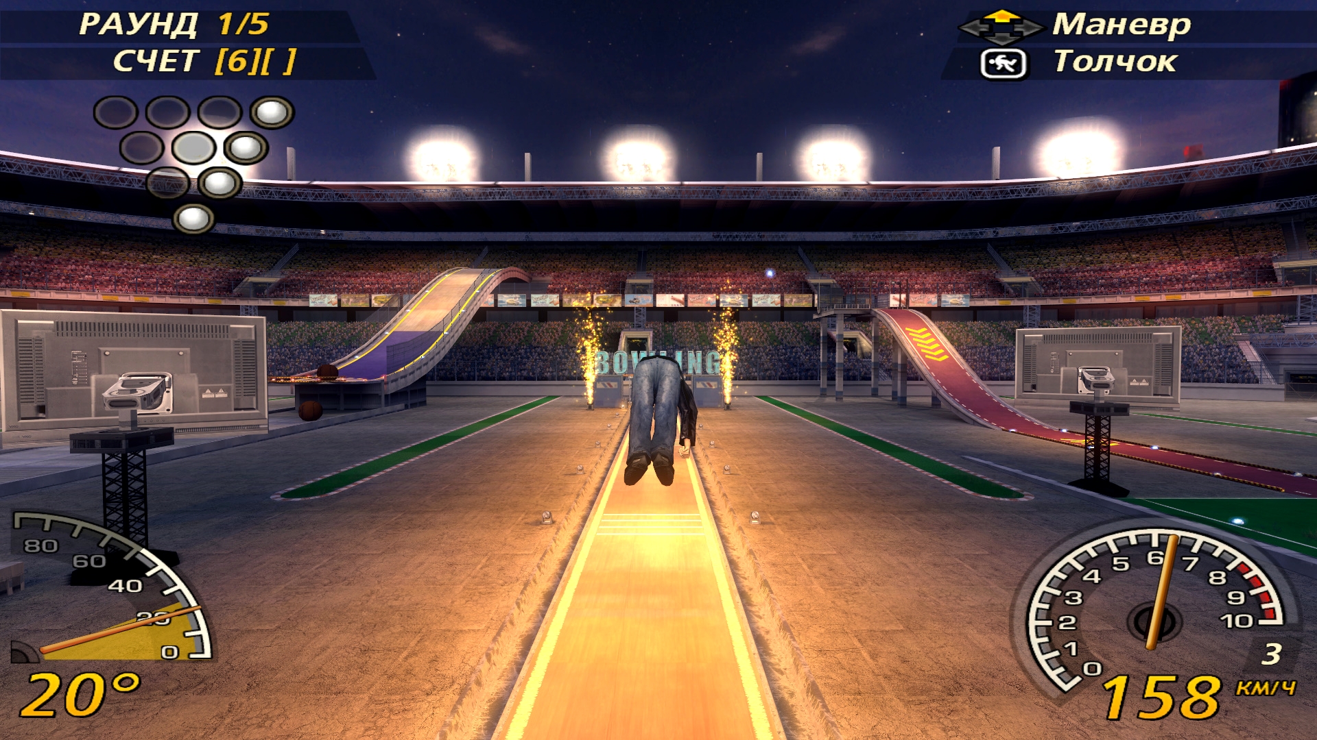Мини-игры: запуск водителя в воздух, боулинг, запах жаренного мяса