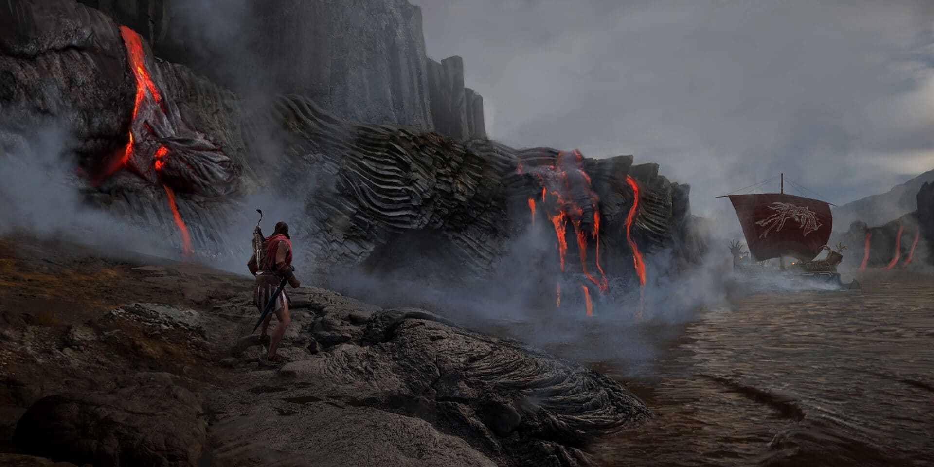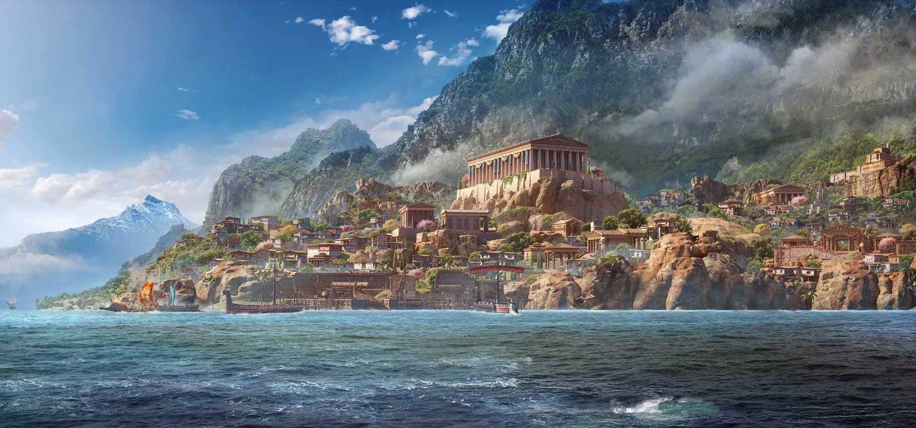 Помимо скриншотов разработчики распространили несколько концепт-артов Odyssey: от дна Эгейского моря, солнечных пляжей и подножия Олимпа до густых лесов, безлюдных горных долин, гигантских статуй и действующего вулкана.