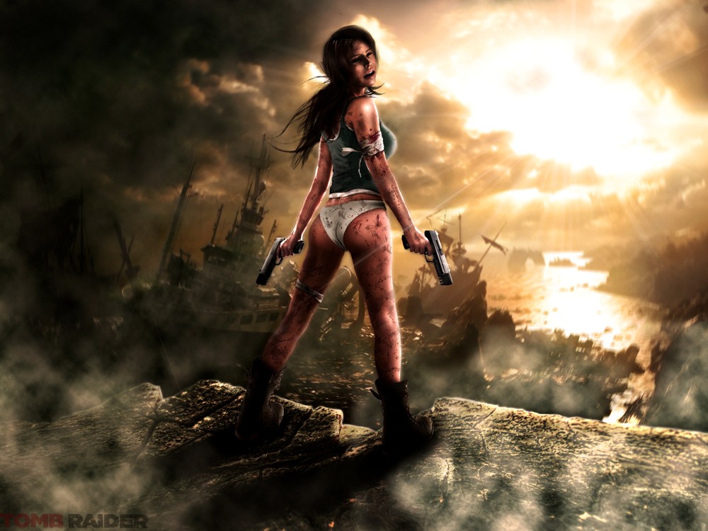 7. Претензия «у Лары отобрали пистолеты». Вот тут самое интересное. Давайте взглянем на кадры из игры, обложки и трейлера.