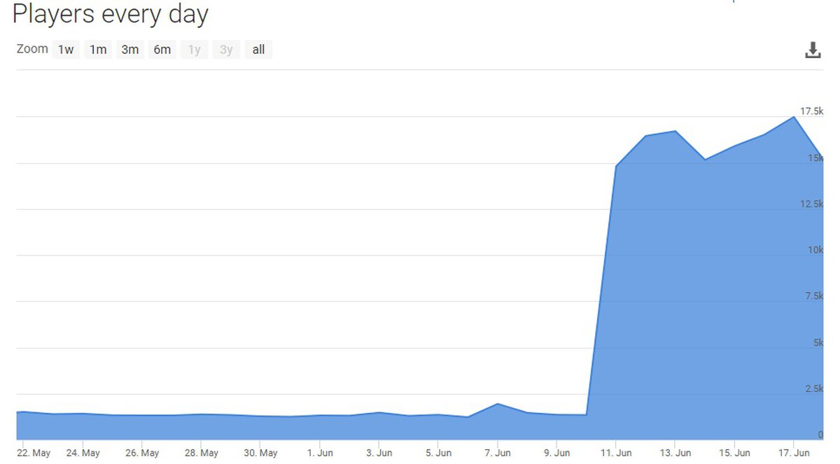 После начала бесплатной раздачи Quake Champions активная аудитория игры заметно выросла. Если за неделю до раздачи в Quake Champions находилось максимум 1300-1400 игроков одновременно, то вчера пиковый онлайн превысил 15 тысяч игроков.