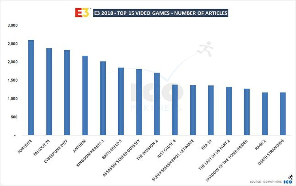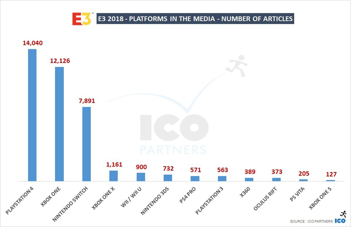 Аналитики ICO Partners опубликовали отчет, в котором проанализировали статьи, посвященные выставке. В 2018 году «медиа-победителем» E3 стала корпорация Sony: проектам для PlayStation было посвящено 16226 статей.