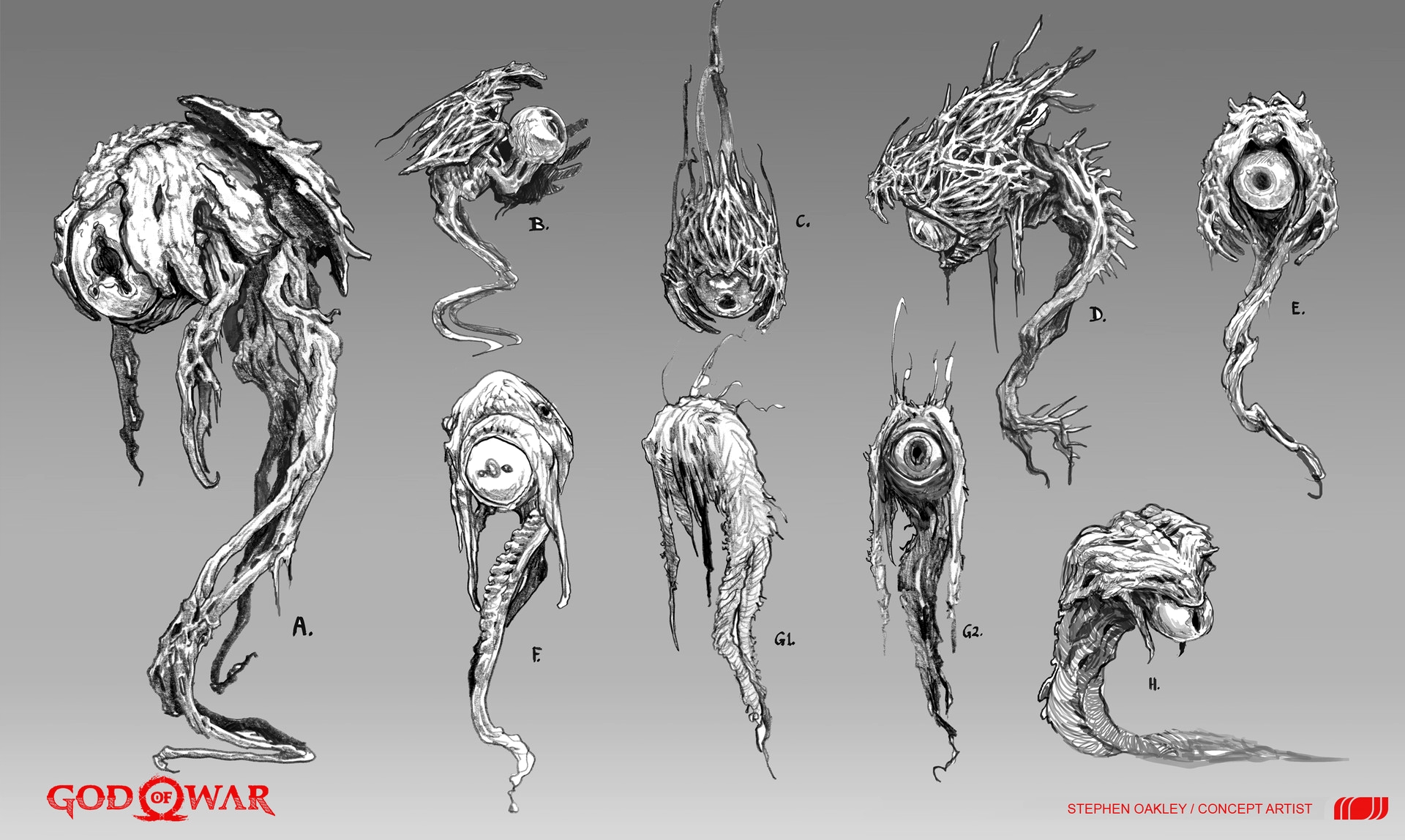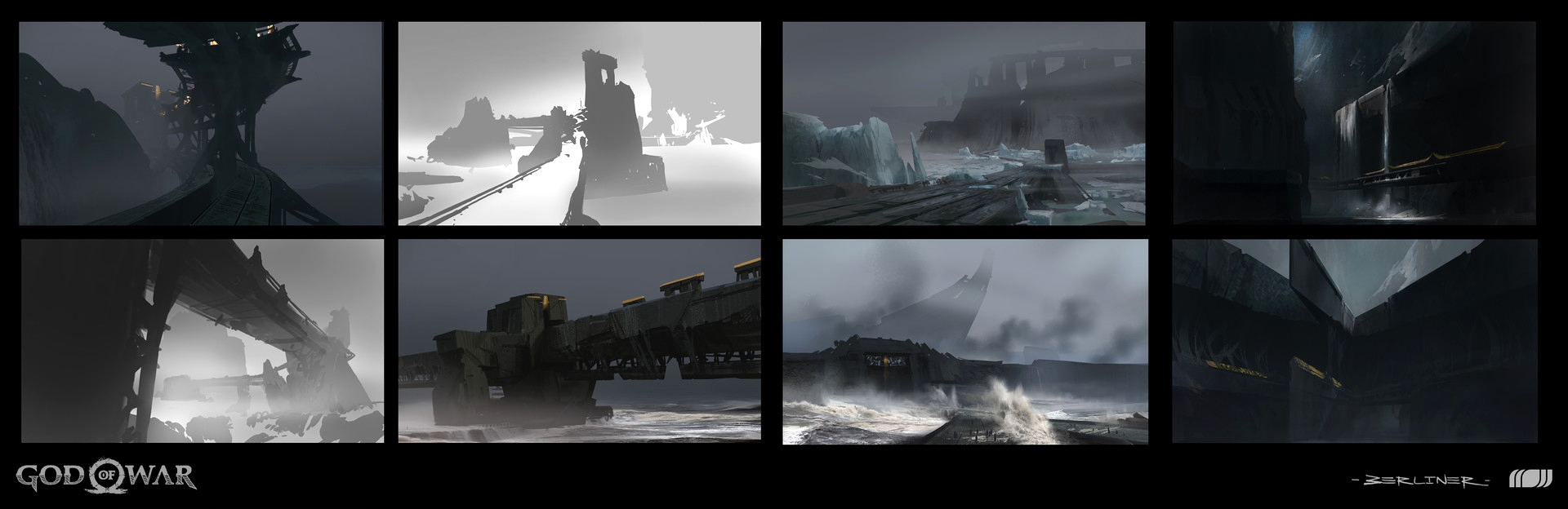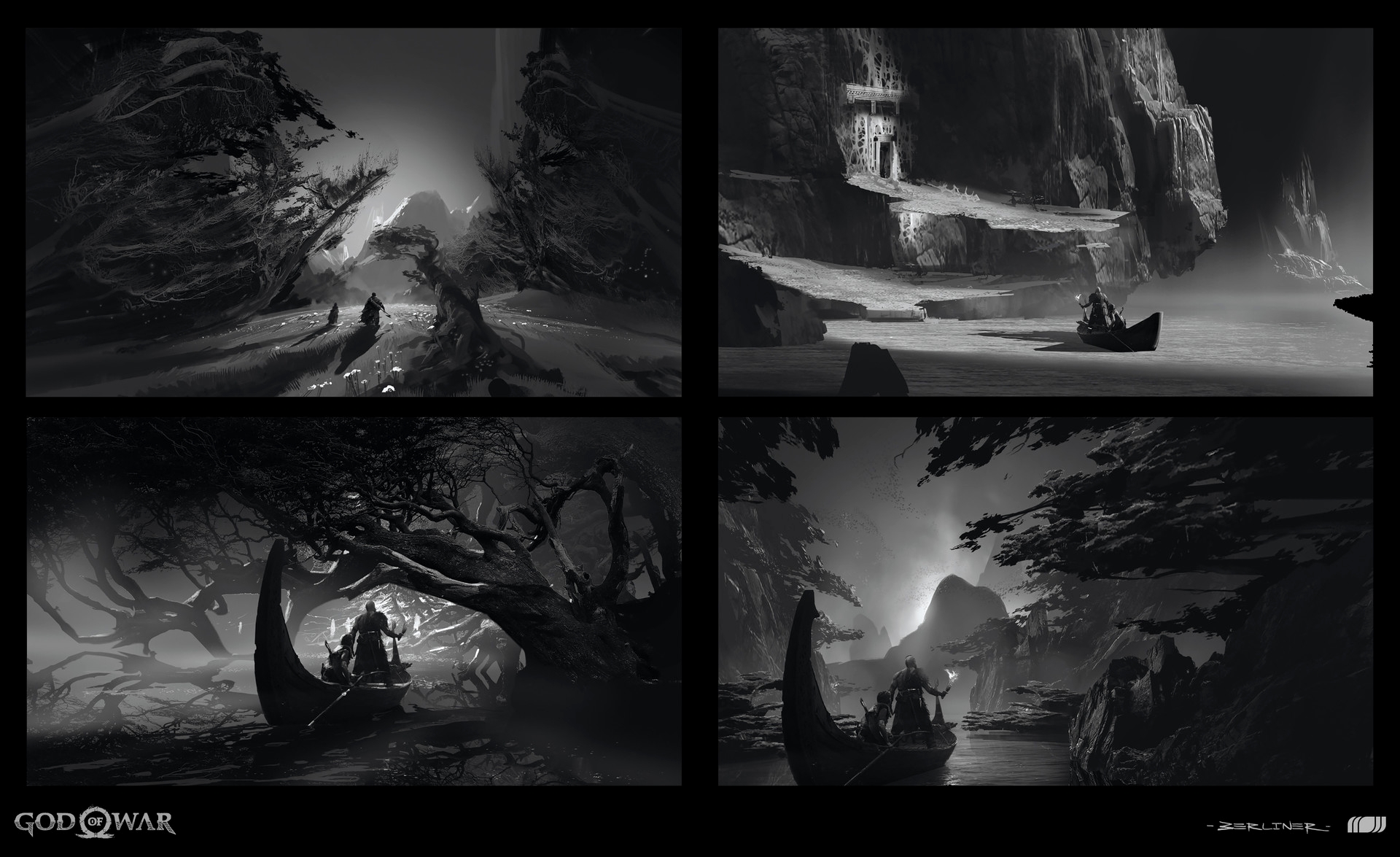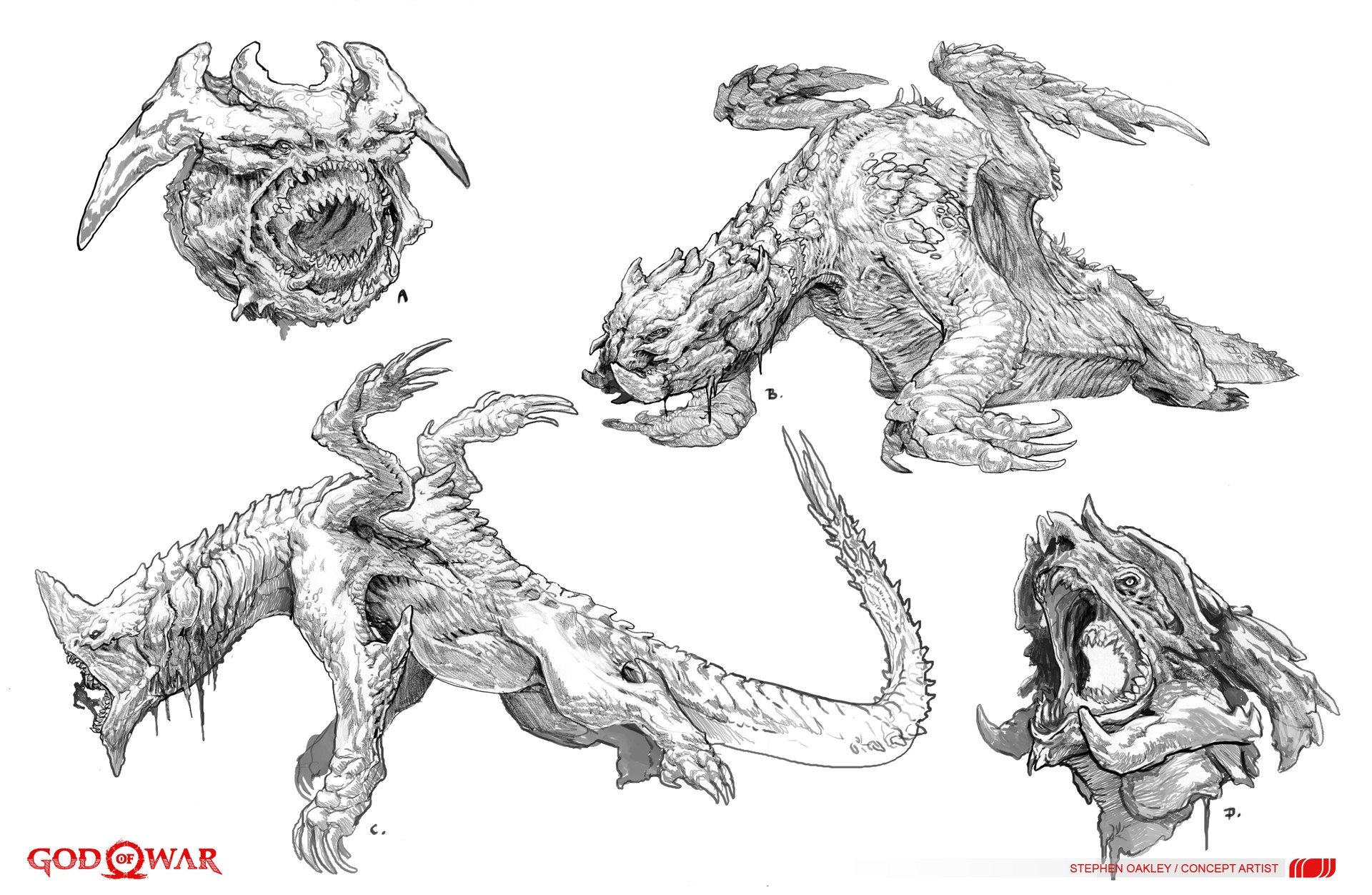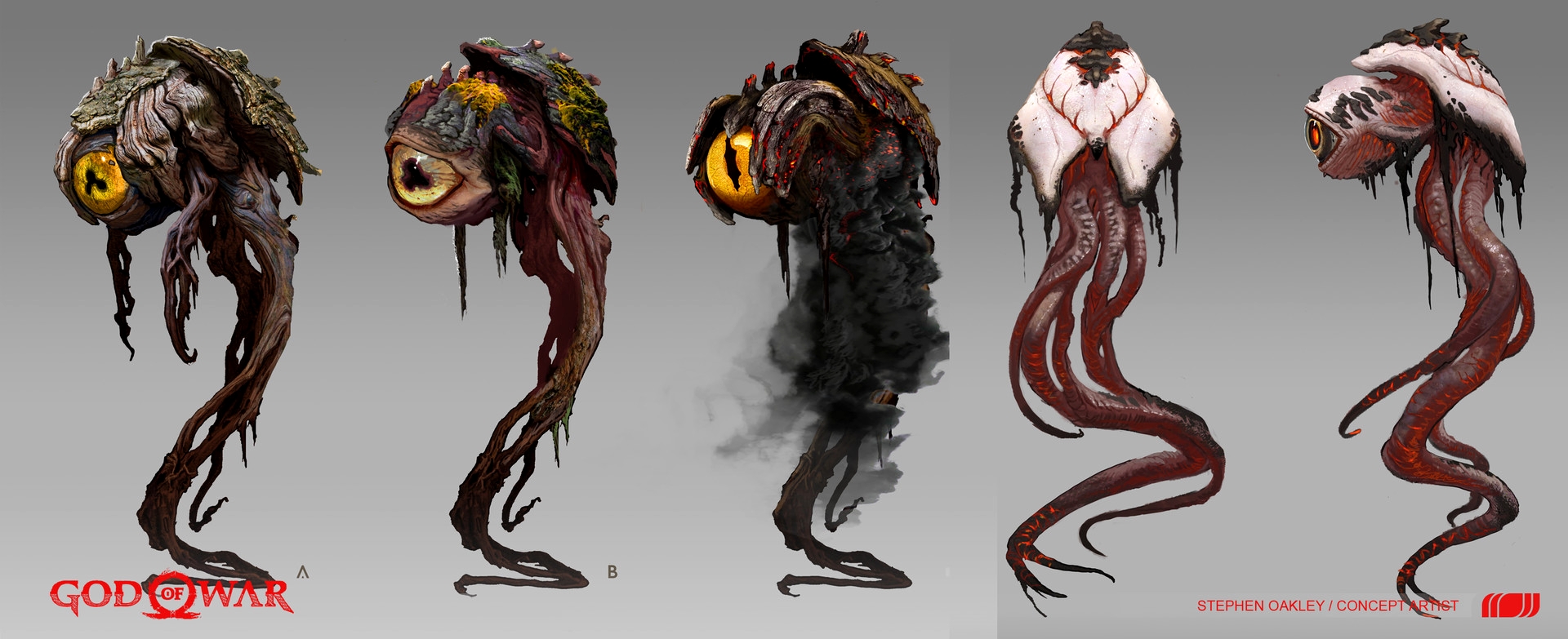 Художественная команда God of War выложила на ArtStation множество концепт-артов, набросков и раскадровок, созданных во время разработки. На концепты попали персонажи (Атрей мог выглядеть совсем иначе), некоторые миры, включая Ванахейм, до которого герои так и не добрались, противники и союзники Кратоса.