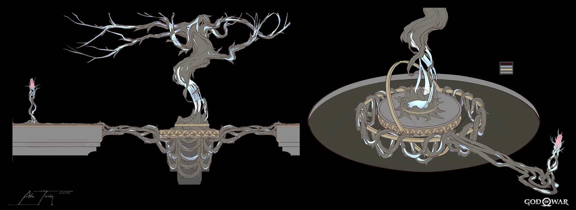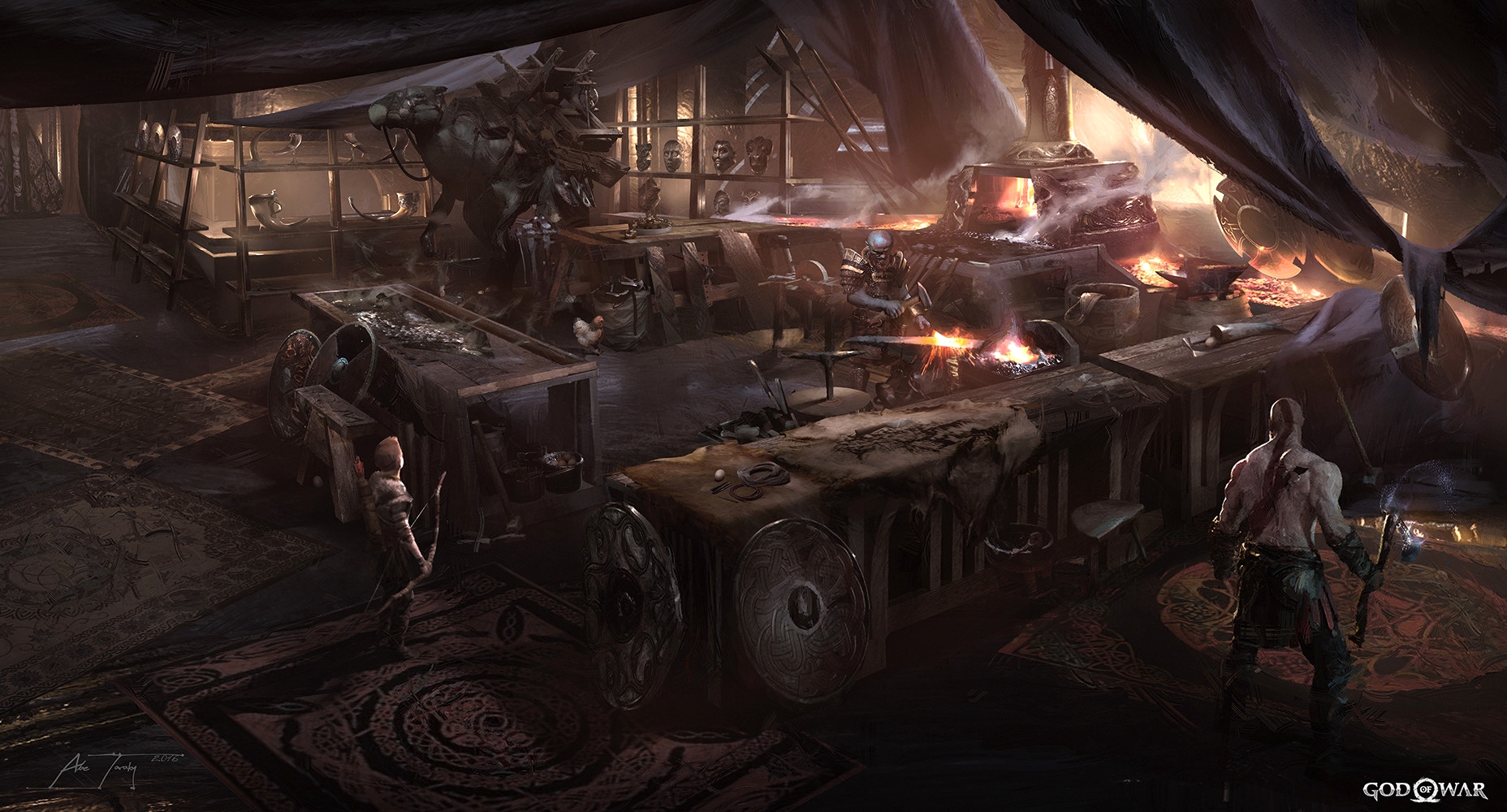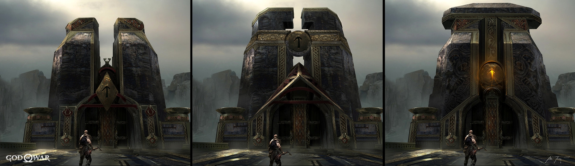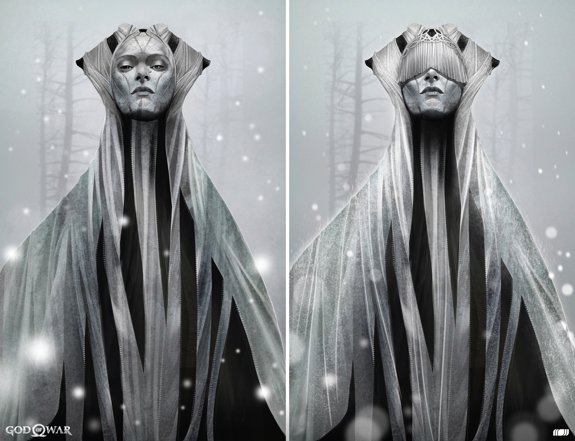 Художественная команда God of War выложила на ArtStation множество концепт-артов, набросков и раскадровок, созданных во время разработки. На концепты попали персонажи (Атрей мог выглядеть совсем иначе), некоторые миры, включая Ванахейм, до которого герои так и не добрались, противники и союзники Кратоса.