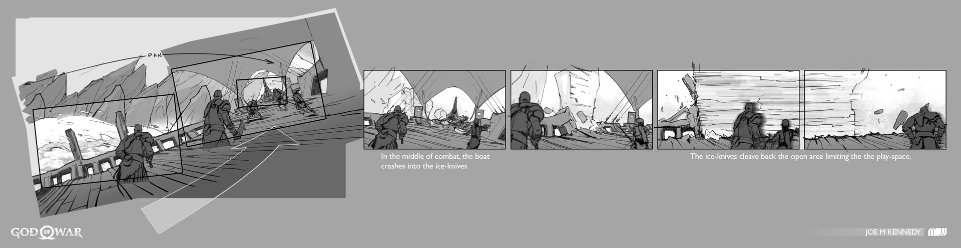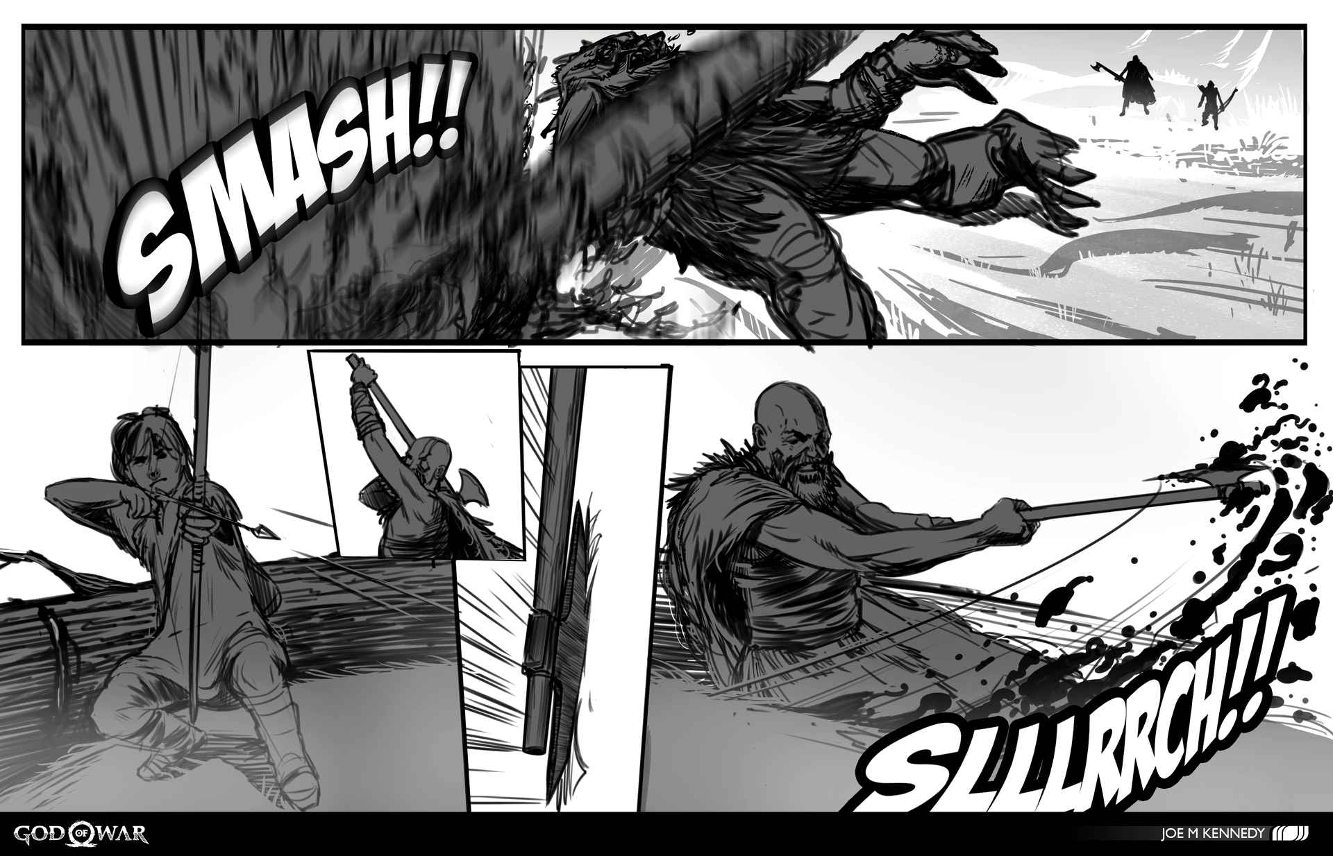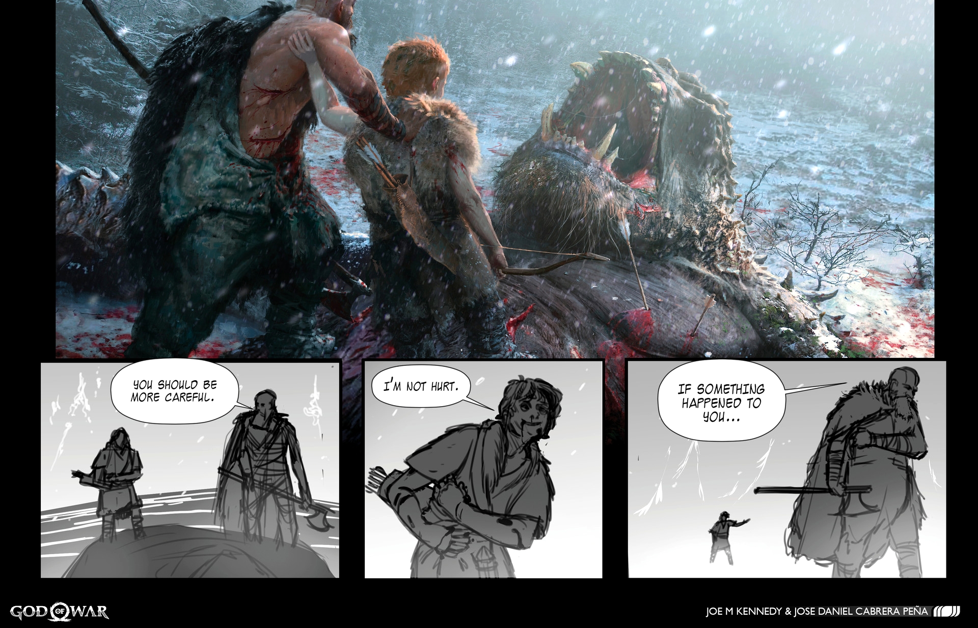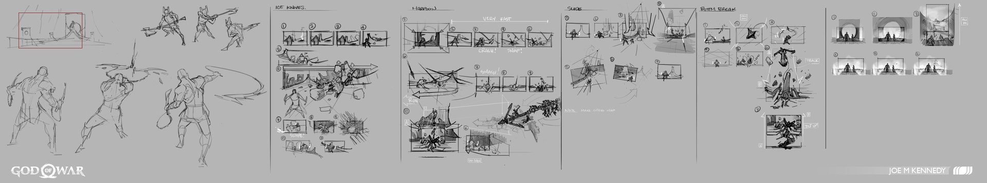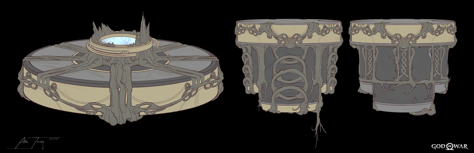 Художественная команда God of War выложила на ArtStation множество концепт-артов, набросков и раскадровок, созданных во время разработки. На концепты попали персонажи (Атрей мог выглядеть совсем иначе), некоторые миры, включая Ванахейм, до которого герои так и не добрались, противники и союзники Кратоса.