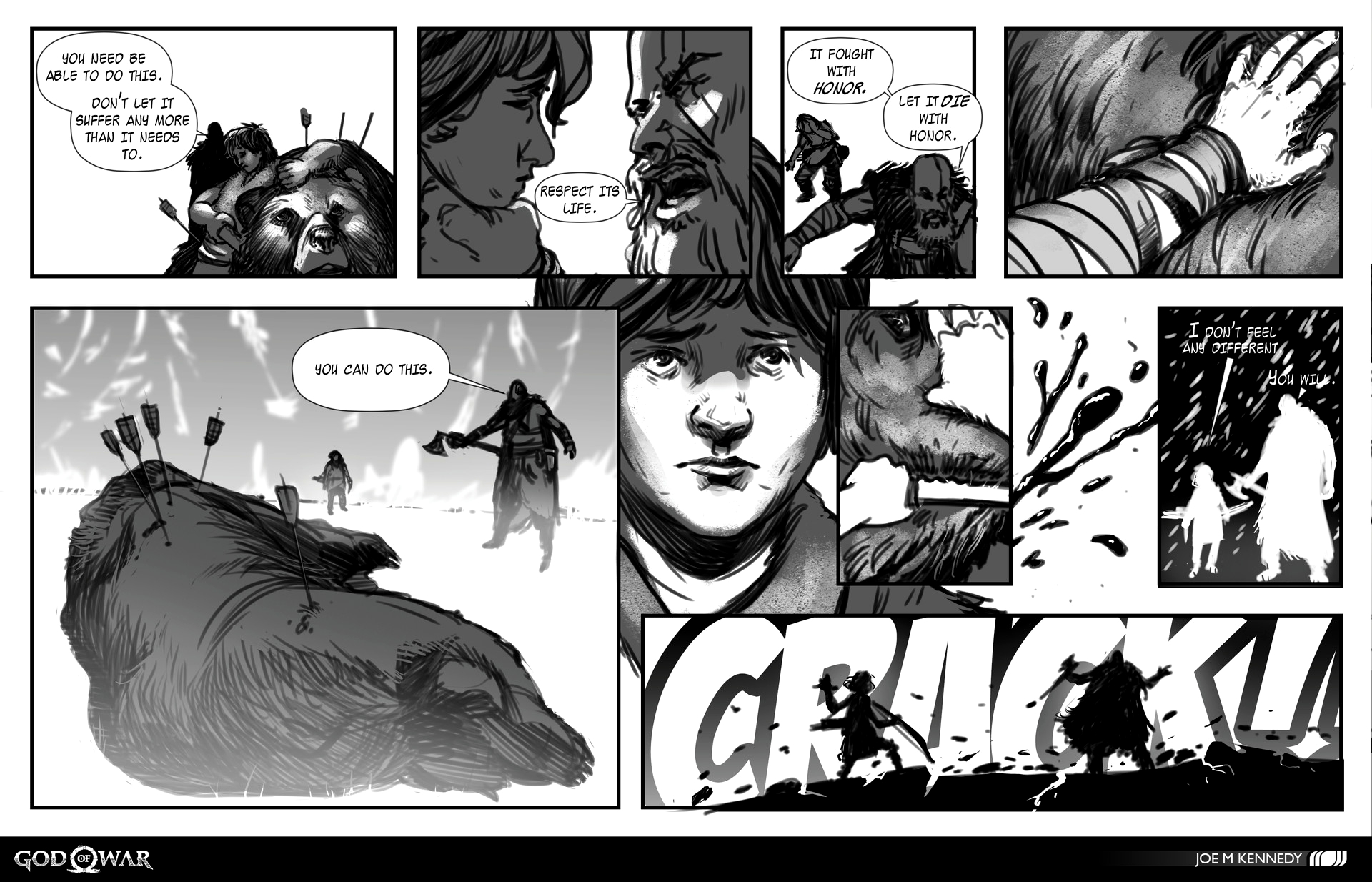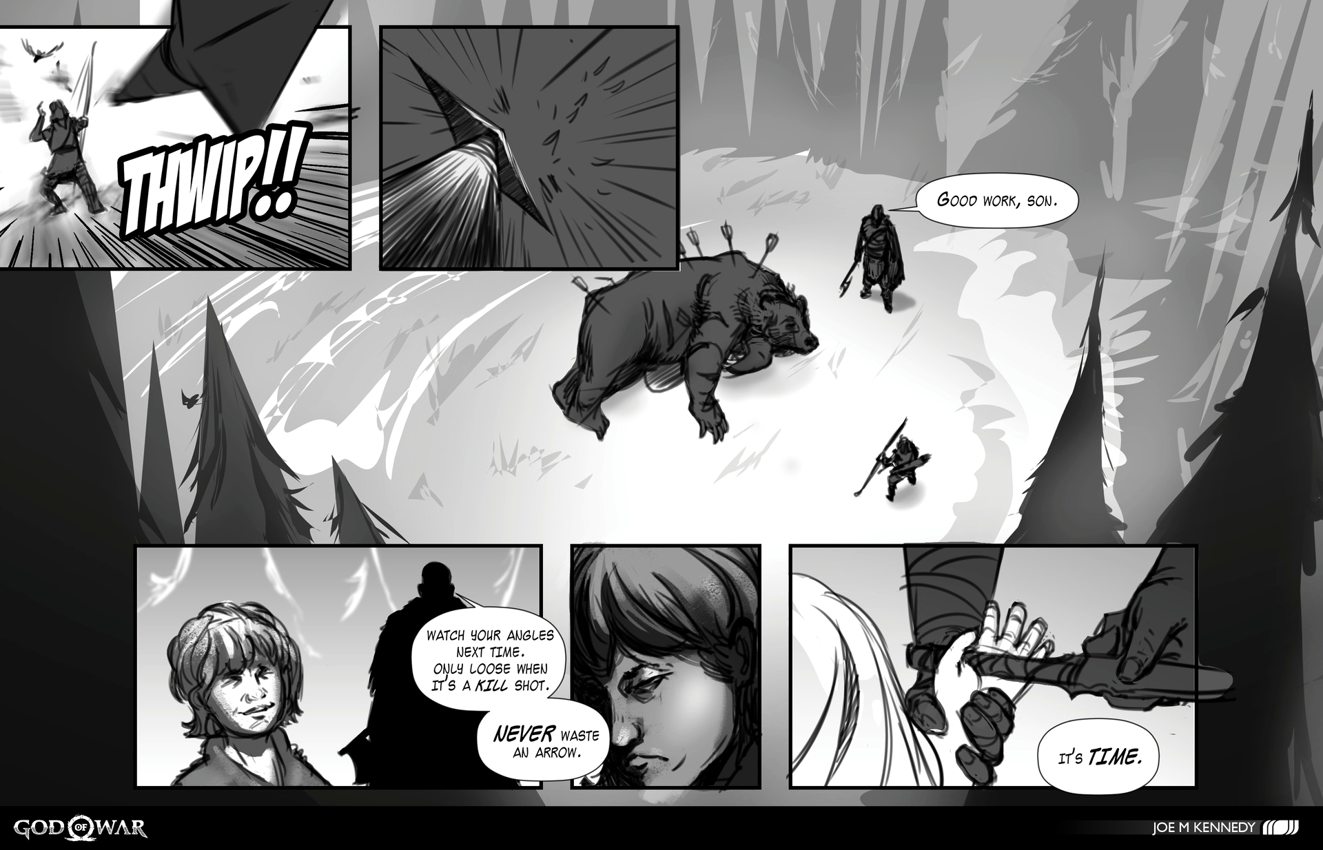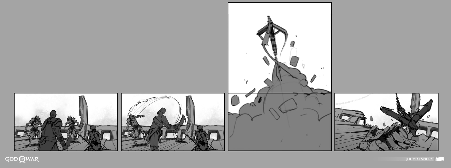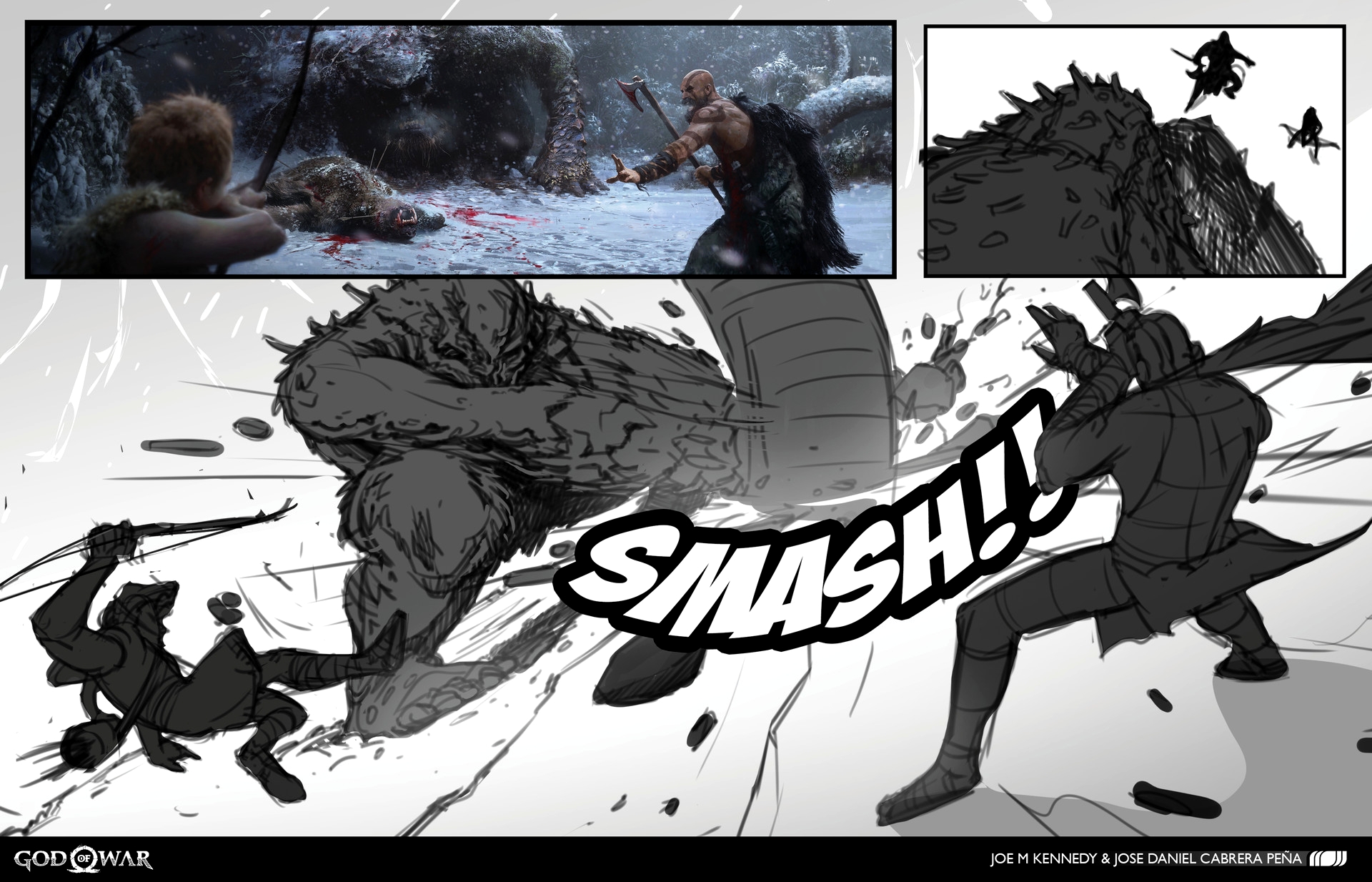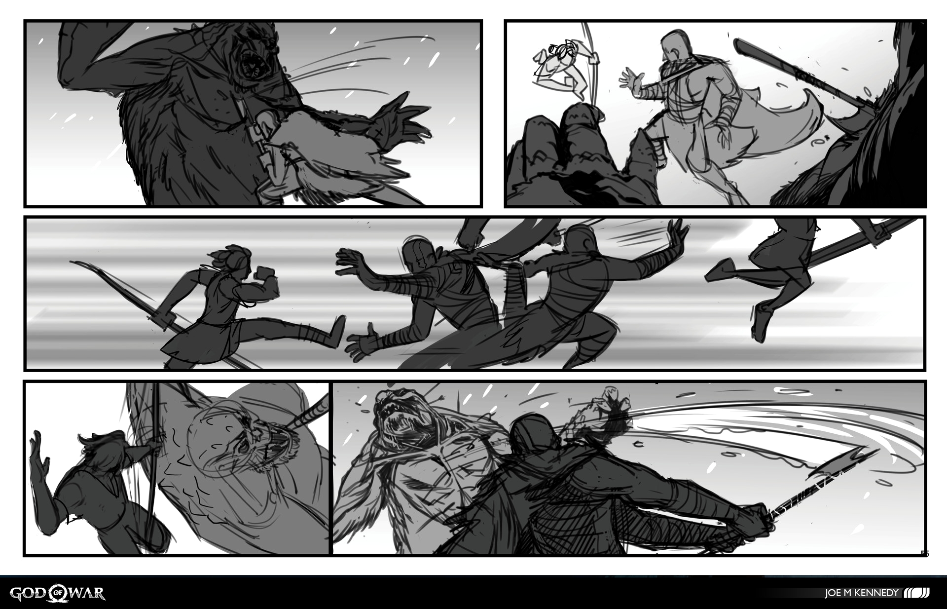 Художественная команда God of War выложила на ArtStation множество концепт-артов, набросков и раскадровок, созданных во время разработки. На концепты попали персонажи (Атрей мог выглядеть совсем иначе), некоторые миры, включая Ванахейм, до которого герои так и не добрались, противники и союзники Кратоса.