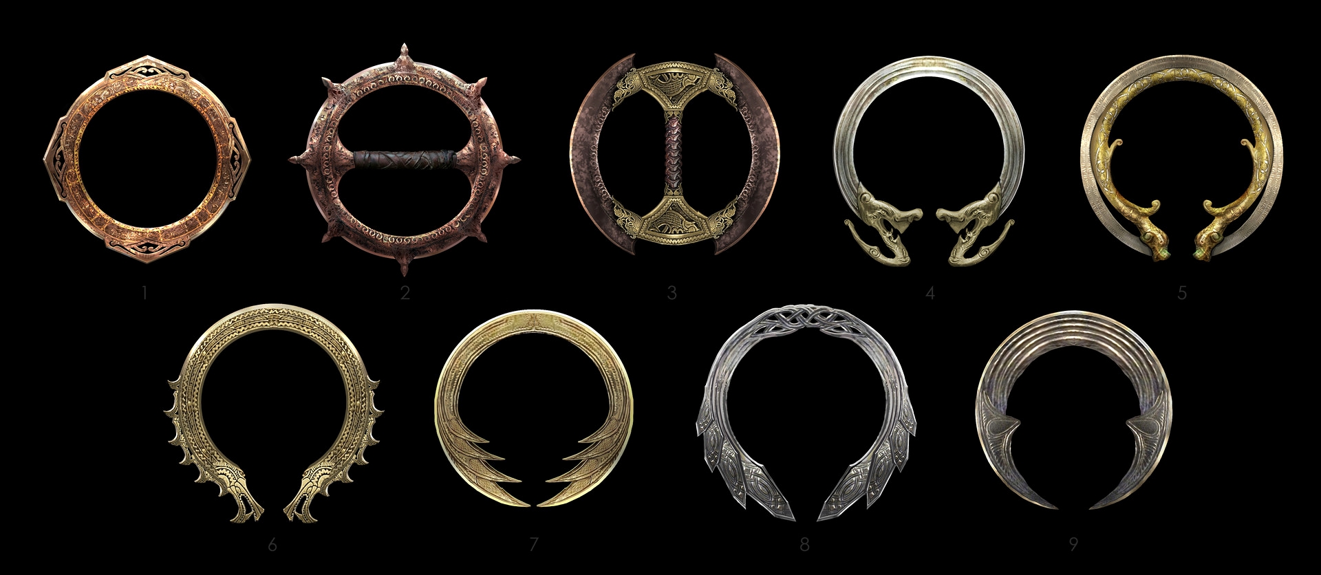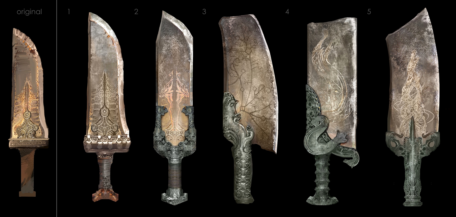 В отдельную галерею мы собрали оружие: здесь есть разные варианты ножей Атрея, топор Кратоса, каменные глыбы, которыми дерутся тролли, несколько версий Мьельнира, молота Тора, и оружие валькирий.