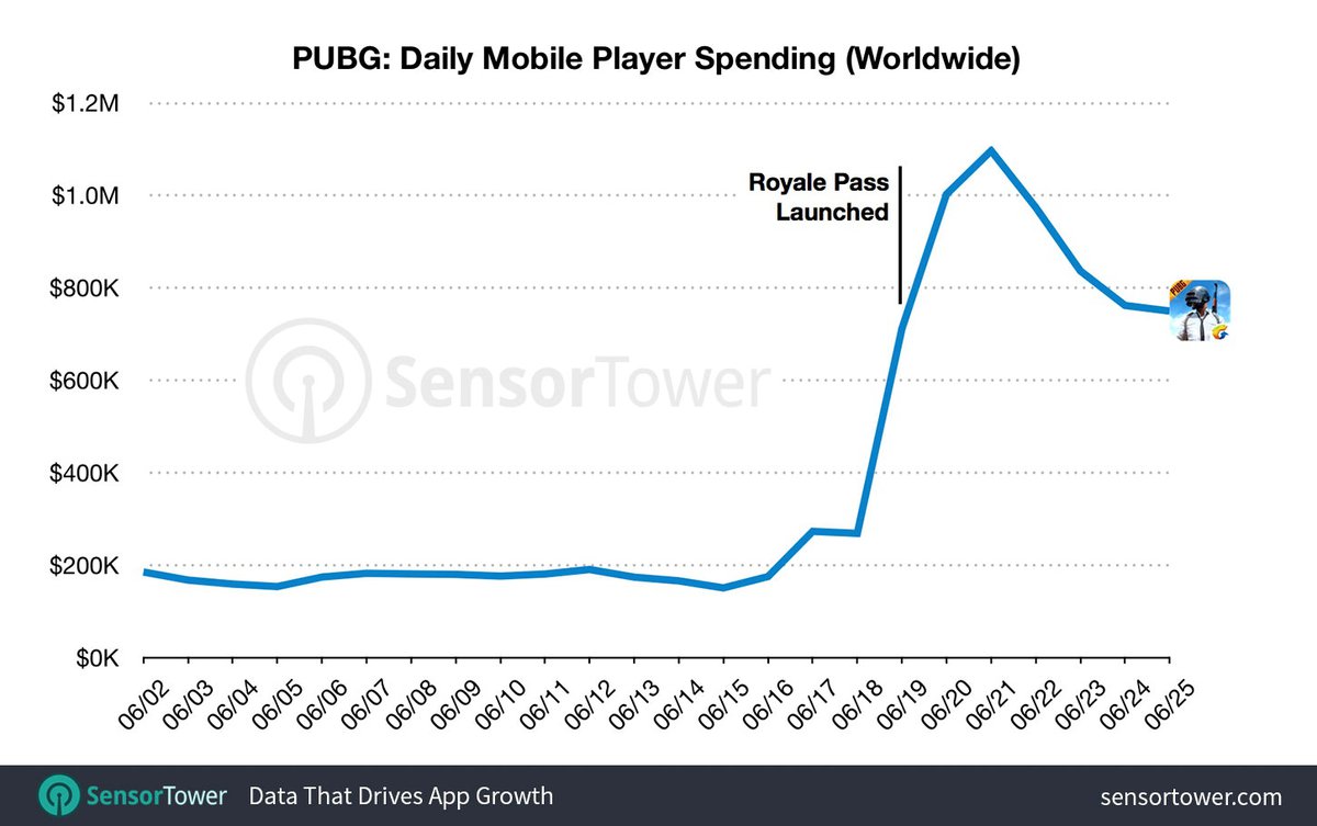До появления Пропуска игра зарабатывала примерно по $200 тысяч в день, в первые дни с Royale Pass выручка достигла пика в $1.1 миллион и постепенно снизилась до примерно $750 тысяч в день. Это почти в 4 раза больше прежних показателей игры.
