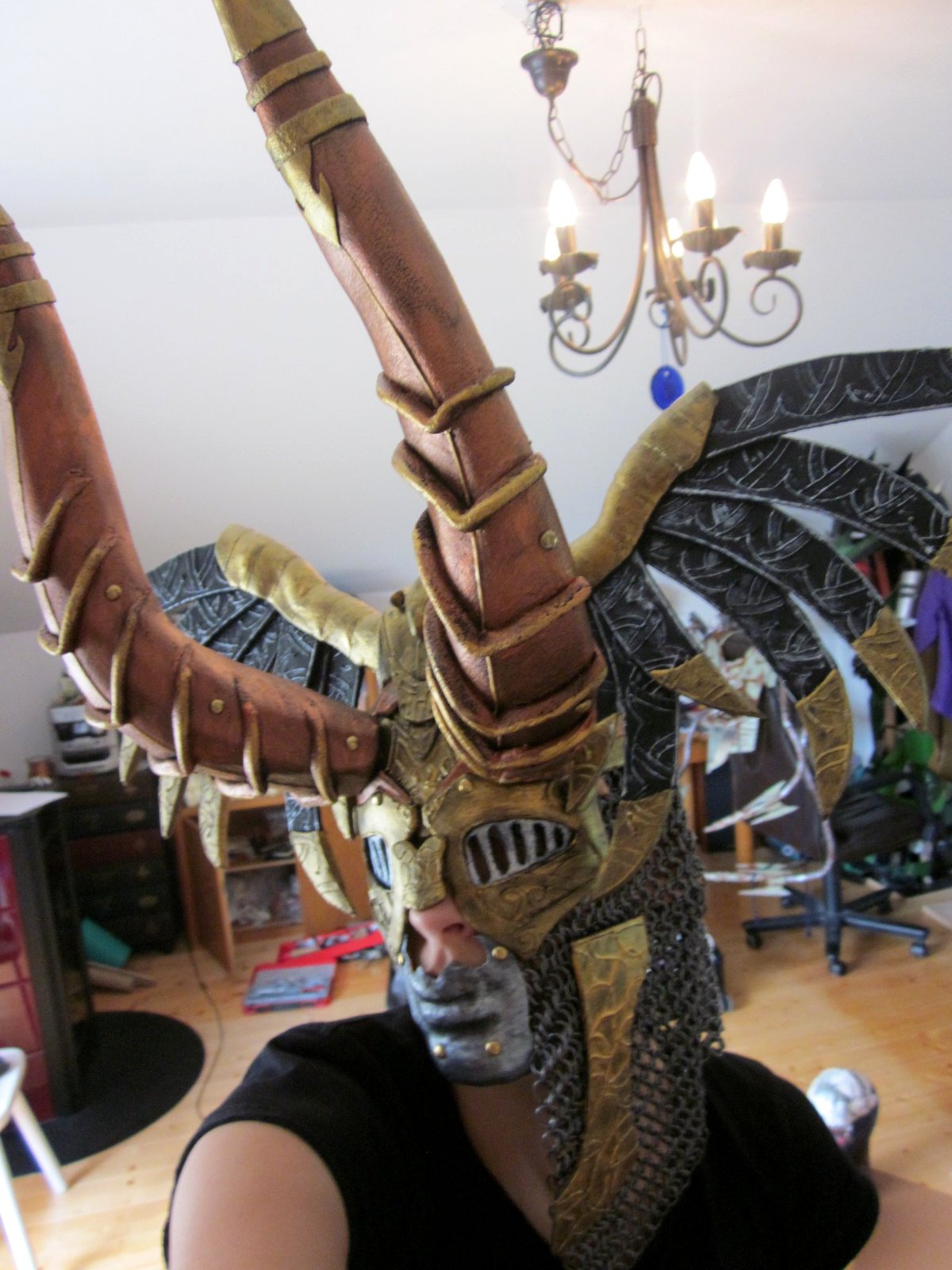 И все-таки немецкая косплеерша chaozrael решила попробовать. У себя в твиттере девушка опубликовала фотографии финальной версии шлема валькирии Гюннр. На создание шлема у chaozrael ушло несколько недель, результат оказался очень близок к тому шлему, который Гюннр носит в игре.