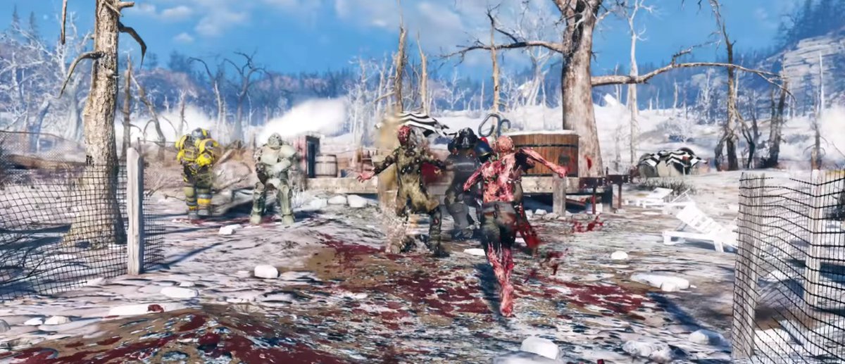 В Fallout 76 будут не только дикие гули. Игроки увидят также и Выжженных — нечто среднее между разумными гулями и их дикими собратьями. За 25 лет в условиях ядерного пост-апокалипсиса Выжженные сумели отчасти сохранить разум: они умеют пользоваться стрелковым и холодным оружием, но договориться с Выжженными, видимо, нельзя.