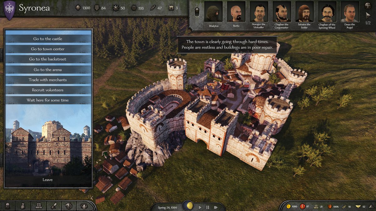 Первый взгляд на городское меню в Mount & Blade 2 Bannerlord
