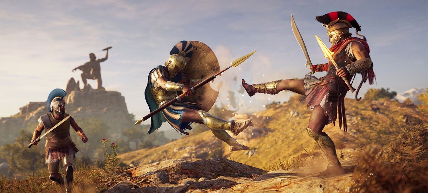 Действительно, Assassin’s Creed начинался как стелс-экшен, а теперь у нас, видите ли, копьё царя Леонида, которое, кроме всего прочего, наполнено ещё и сверхъестественной силой, которое распространяет вокруг себя ударные волны, причиняя дополнительный, "бонусный" урон.
