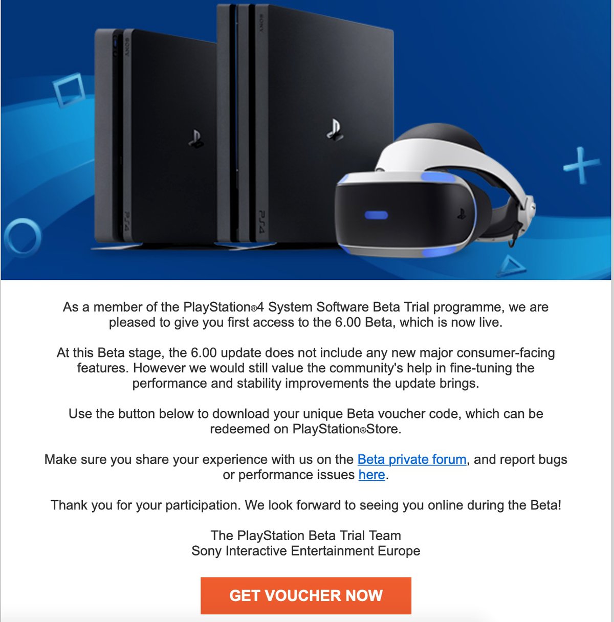 Игровое подразделение Sony, в середине июля объявившее о приеме заявок на участие в бета-тесте прошивки 6.00 для PlayStation 4, начало рассылать приглашения владельцам консолей, отобранным для проведения тестирования.