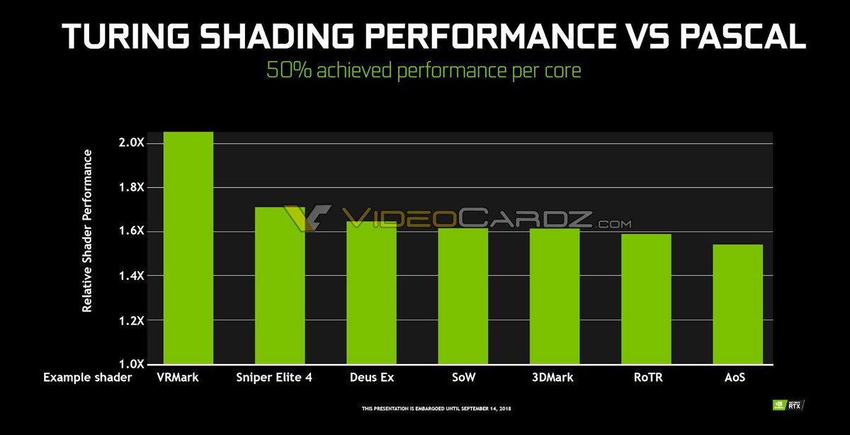 Редакторам VideoCardz удалось добыть несколько слайдов с закрытой презентации новых игровых видеокарт Nvidia. Во время презентации сотрудники компании подробно рассказали об архитектуре Turing, а также назвали срок эмбарго на публикацию обзоров.