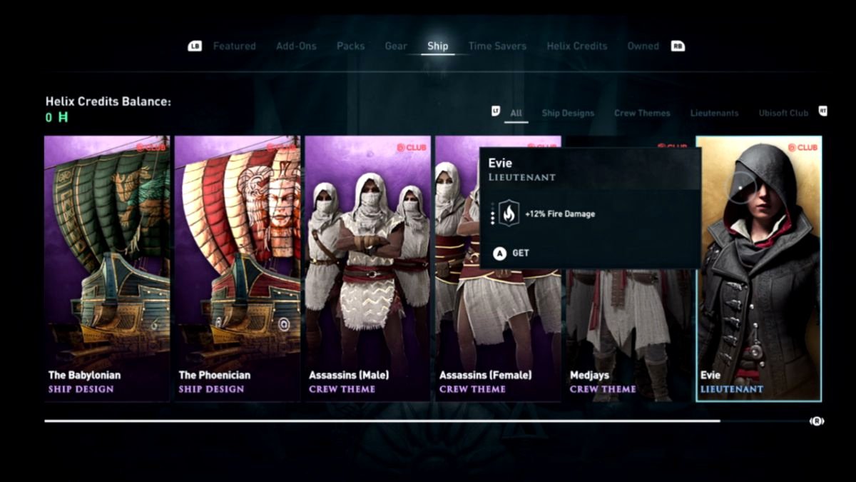 Кроме того, игроки могут приобрести специального лейтенанта, Иви Фрай — одного из главных героев Assassin's Creed Syndicate. И Фрай, и команды ассасинов-меджаев приобретаются не за кредиты Helix (то есть реальные деньги), а за очки Ubisoft Club.