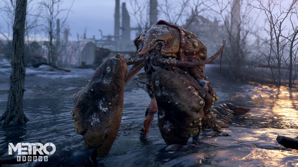 Бывают в Metro Exodus и более забавные мутации. Например, в весенней локации живет не только огромный сом: под воздействием радиации кто-то из местных ракообразных мутировал и значительно увеличился в размерах. Местные жители называют их креветками.