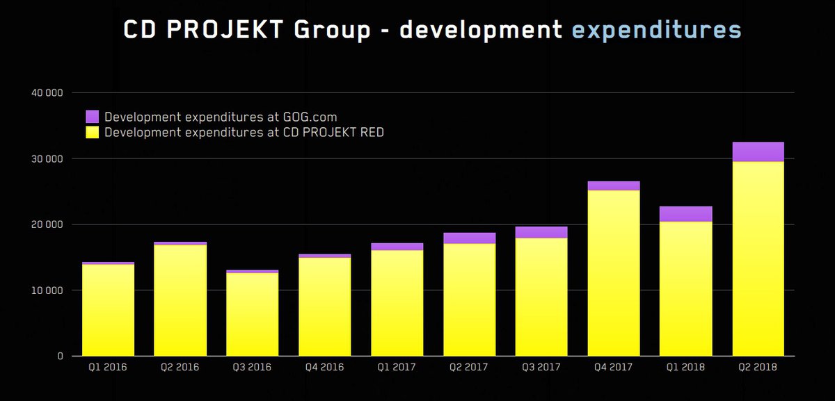 Весной к работе Cyberpunk 2077 присоединилась студия во Вроцлаве. В первой половине 2018 холдинг потратил на разработку новых проектов около 12 миллионов евро — это почти в полтора раза больше, чем в первой половине 2017 года.