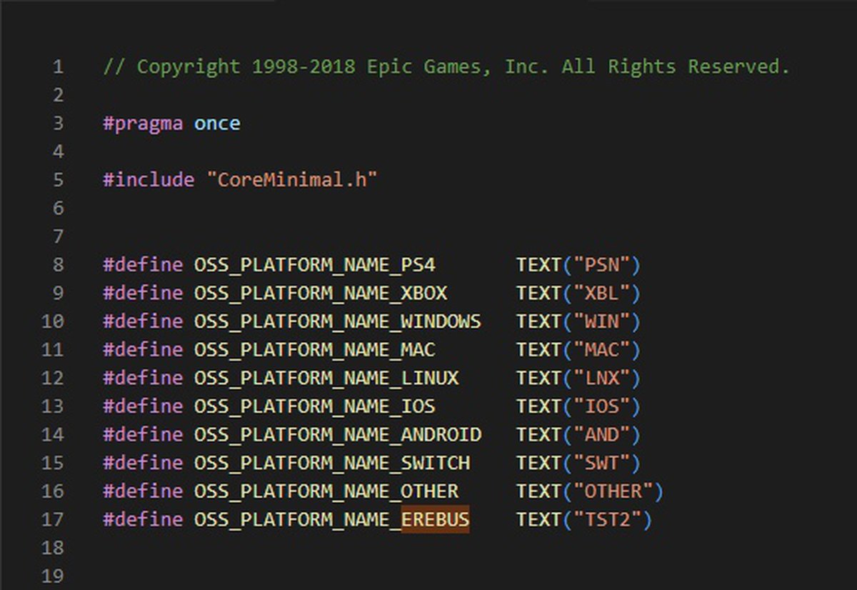Gemüsepizza, один из пользователей форума ResetEra, обнаружил в коде Unreal Engine 4 любопытную вещь. Он наткнулся на список платформ, поддерживаемых движком; помимо Nintendo Switch, PlayStation 4, Xbox, PC, Mac, iOS и Android в коде присутствовал идентификатор некой платформы Erebus.