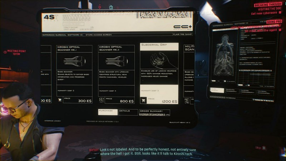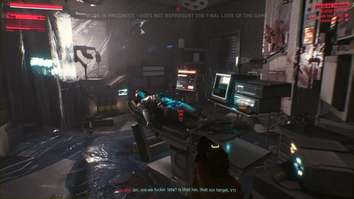 В демо показывают множество по-настоящему впечатляющих последовательностей, когда V получает улучшения у подпольного риппердока, что, с другой стороны, не вселяет уверенности в том, что происходит. В любом случае, не смотря на то, что мы столкнёмся с ультрасовременными технологиями, которые смоют границы между органическим и синтетическим, киберврач до сих пор использует... монохромные мониторы. Как это вообще возможно?! V постоянно стримит полноцветные видео прямиком из своих собственных глаз! А этот парень до сих пор использует мониторы, которые заставят Бориса Розинга поёжиться. Мне начинает казаться, что весь этот киберпанковский концепт не имеет смысла...