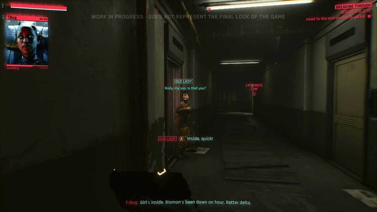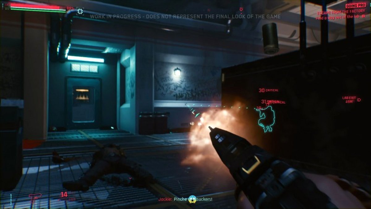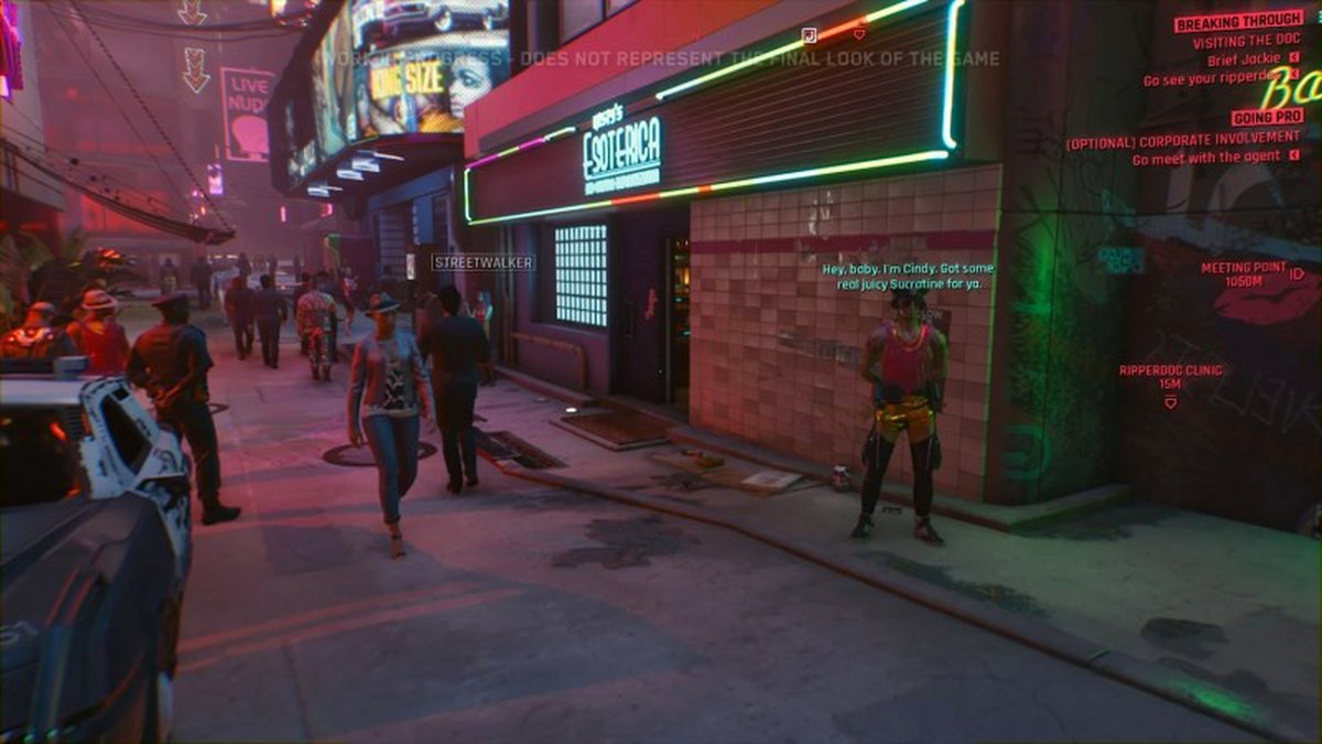 Во время демо V (протагонист) будет располагать большим количеством информации. Благодаря её встроенным сканерам, конечно. Уведомления о хакинге, имена персонажей и даже видеозвонки с напарниками будут всплывать то тут то там, пока она контактирует с миром. Это как своеобразная лента в социальных сетях, только встроенная прямиком в глаза. В самом начале нас предупреждают о том, что может быть показан вариант "тёмной версии будущего".