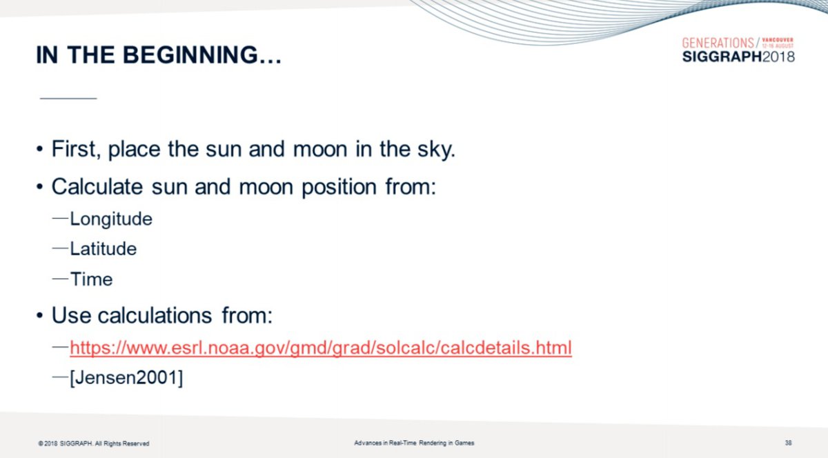 О попытке внедрения такого цикла дня и ночи сотрудники Ubisoft рассказали на конференции SIGGRAPH, где разработчики Ubisoft Montreal провели презентацию, посвященную созданию открытого мира Far Cry 5. Предполагалось, что положение солнца и луны будет рассчитываться честно: на основе времени, широты и долготы.