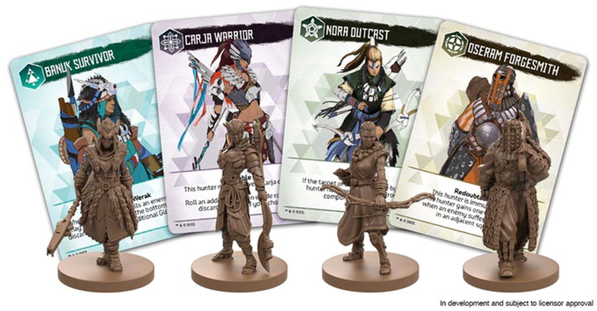 Каждый из охотников обладает собственными умениями и навыками: например, воин Озерам орудует мощным молотом, а охотница Нора предпочитает лук. Помимо фигурок охотников для настолки будут созданы статуэтки роботов — они выглядят точно так же, как в Horizon Zero Dawn, и выполнены под надзором Guerrilla Games.