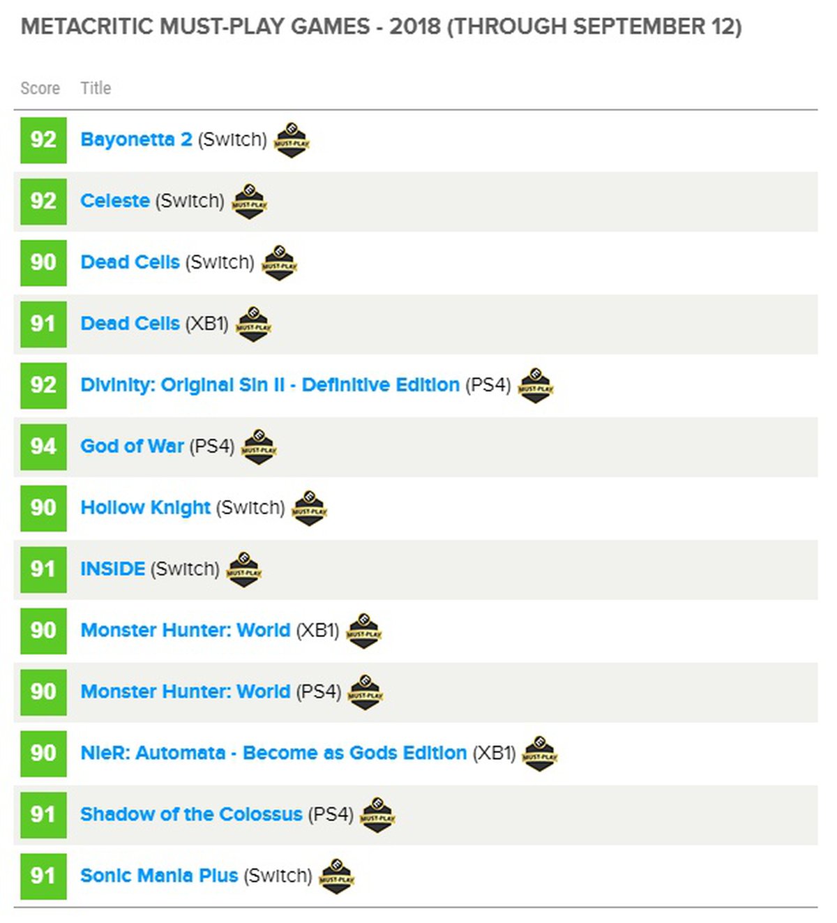 Новая метка называется «Must-Play», ее получат все игры с рейтингом от 90 баллов и хотя бы 15 обзорами, написанными профессиональными критиками. В 2018 году метка «Must-Play» досталась только 11 играм: это, например, God of War, Hollow Knight, Shadow of the Colossus и Monster Hunter World.
