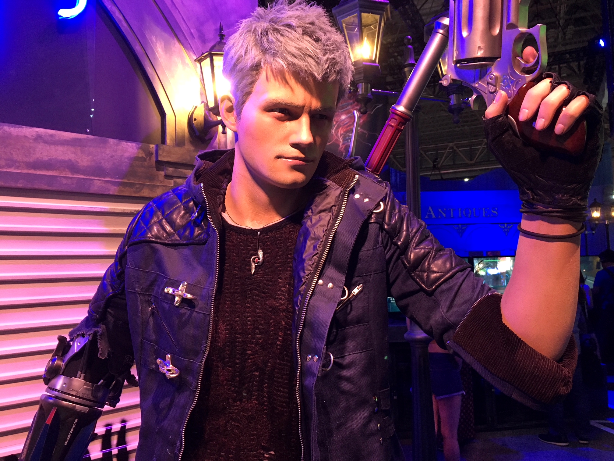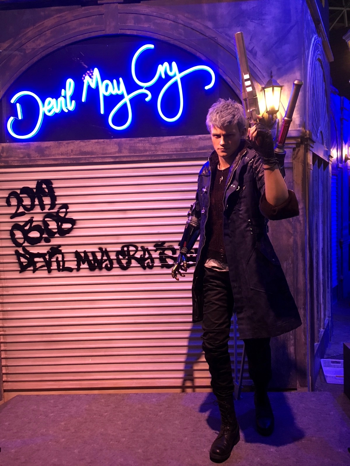 Охотник на демонов получился совсем как настоящий. К сожалению, статуй Данте и V на токийской выставке нет.