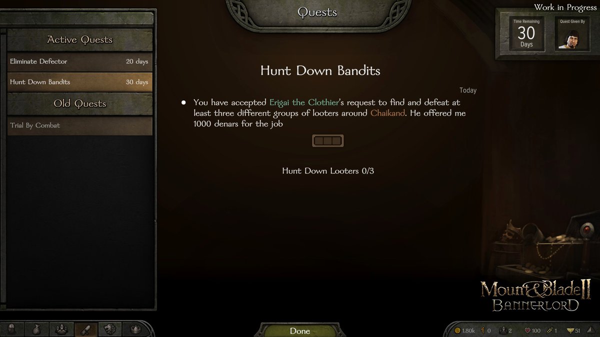 Чтобы игрокам было проще ориентироваться во взятых заданиях, дизайнеры TaleWorlds полностью переделали журнал квестов. Раньше они показывались в заметках, но в Bannerlord появится именно полноценный журнал: здесь для каждого задания ясно прописаны цели и награды, а в тексте есть гиперссылки, ведущий в игровую базу знаний.