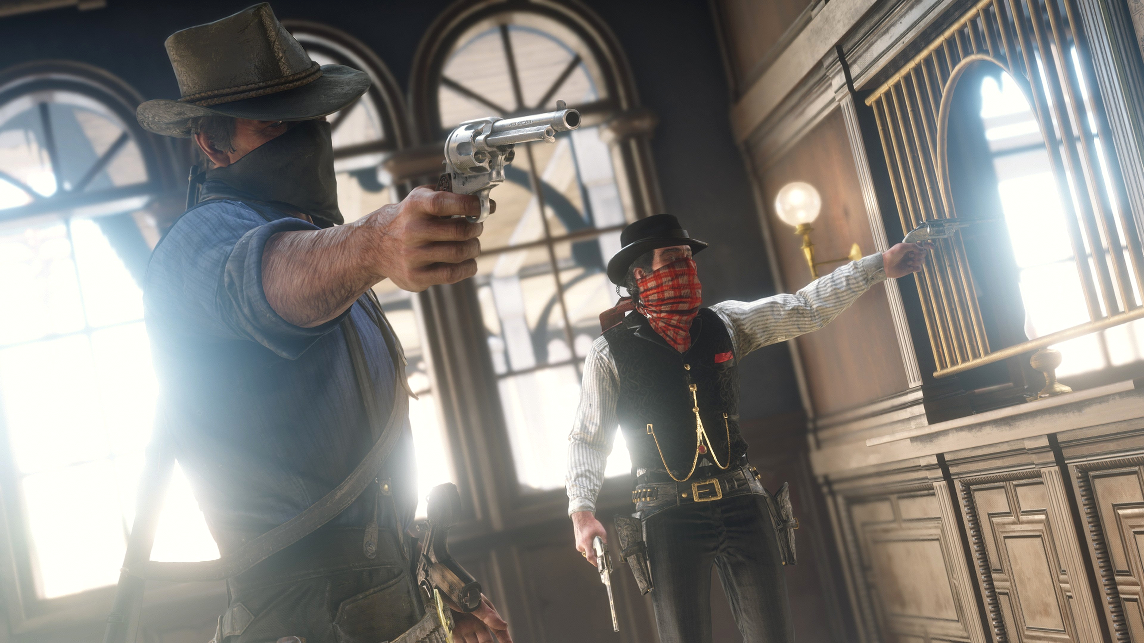 Новые изображения сняты как раз в первые часы прохождения: здесь Артур Морган готовится к налету на поезд и ограблению банка, охотится, скрывается от преследования и вместе с товарищами участвует в набеге на вражеский лагерь.