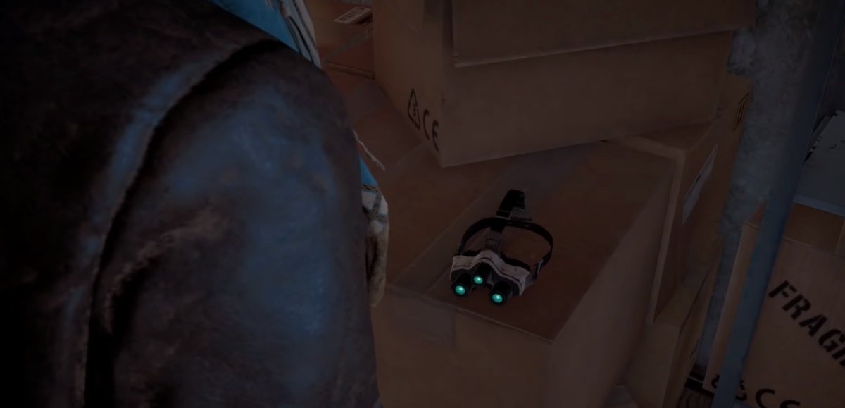 Продолжаем исследовать базу. На куче коробок лежат «трехглазые» очки ночного видения — очень похожим устройством пользуется Сэм Фишер, главный герой Splinter Cell. Лейла моментально подтверждает отсылку: «Третий эшелон. Или четвертый?». Нет, о разработке нового Splinter Cell речи пока не идет.