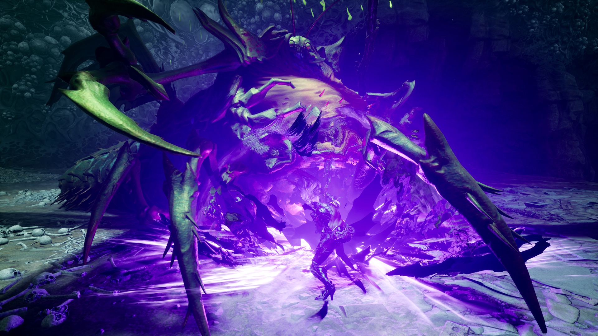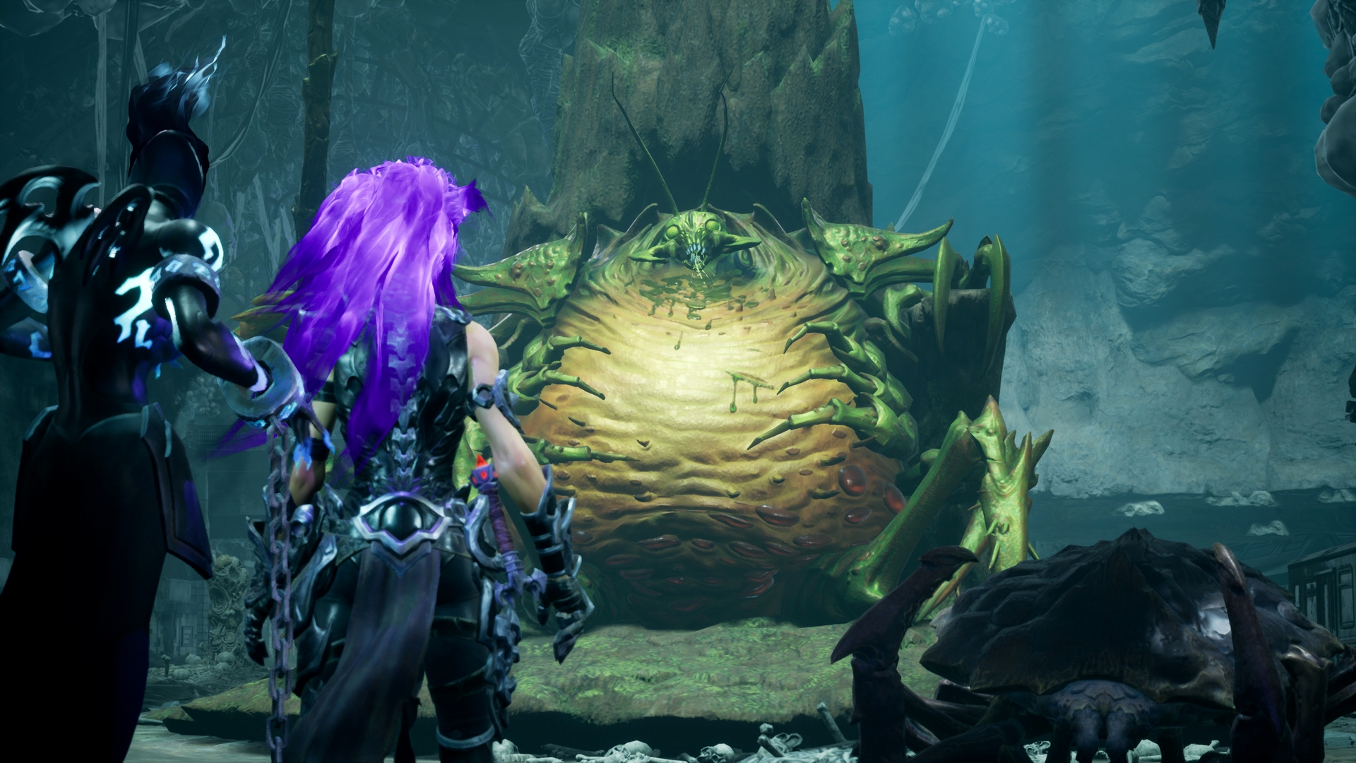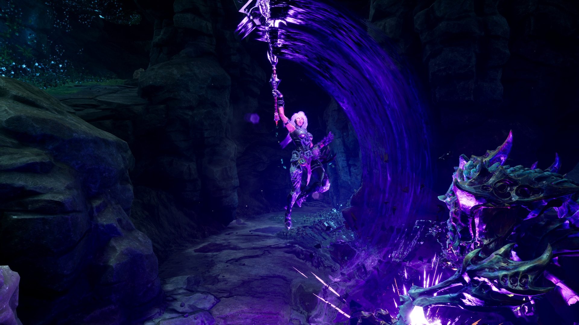 В утреннем трейлере Darksiders 3 мы впервые увидели вторую боевую форму Ярости: разработчики называют ее Силой. На новых скриншотах команда Gunfire Games предлагает подробнее рассмотреть Ярость, сменившую пламя на фиолетовое сияние.