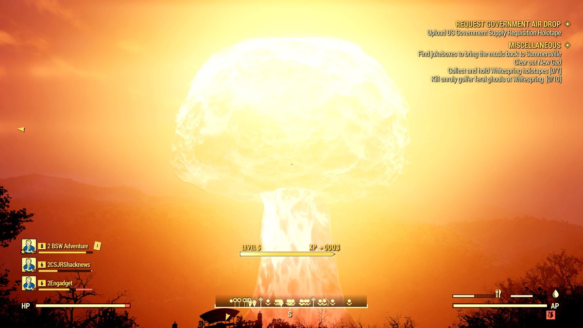 Сюжет. Основная сюжетная линия в Fallout 76 длинная (несколько десятков часов), но скучная: задания на уровне подай-принеси, подстрели нескольких монстров или собери данные. Никаких NPC-людей в игре нет, подача сюжета происходит через роботов и терминалы.