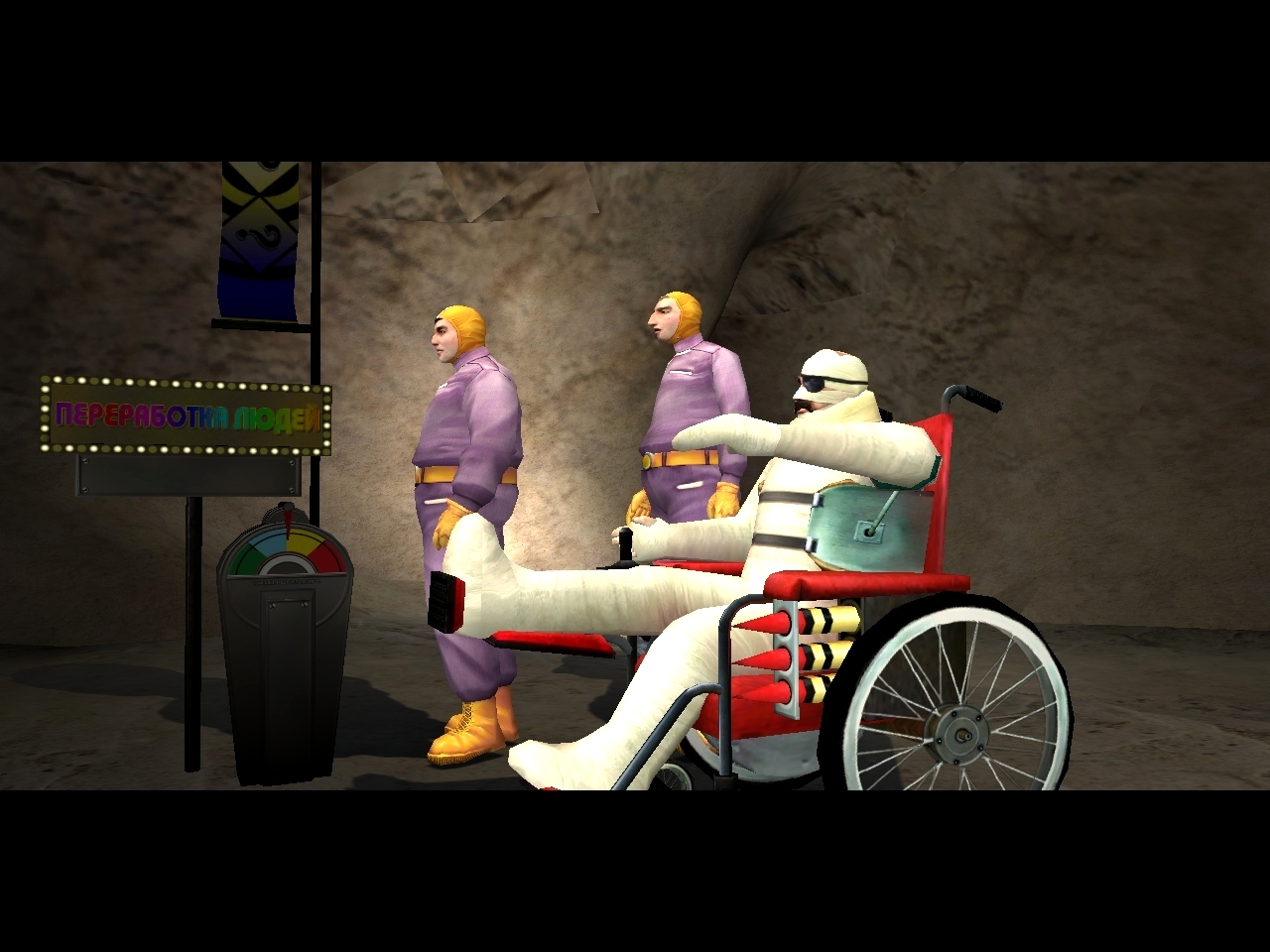 Но ни один из боссов не сравниться с Пьером - королём мимов, которого мы мало того, что в первой битве, или даже гонке на велосипедах упускаем, так ещё и финальный бой с ним бьёт все понятия сложного шутера! Загвоздка в том, что он мелкий, и может с лёгкостью бегать под полом. Изредка Пьер вылезает в отверстия вентиляции, и мы должны либо успеть по нему попасть, либо пустить пар. Однако не это самое сложное - всё это происходит за время, 2 минуты, иначе наш Шотландский друг - умрёт, и всё это ещё происходит вперемешку с битвой с армией того самого короля мимов. Напомню, что шутер старый, а это означает - никакого клубничного варенья вам на экран! Только лечилки с трупов, только хардкор! К слову чтобы восполнить запас в бою, надо найти либо аптечку, что сравнимо с поиском адекватов в оффтопе, либо просматривать трупы. Однако в данной битве лучше вкачать навык осмотра на максимум, иначе вас убьют прежде чем вы осмотрите труп солдата.