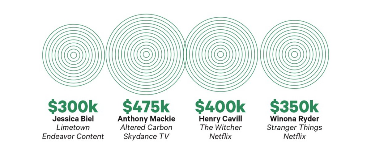Редакция Variety опубликовала материал, посвященный вознаграждениям актеров из известных сериалов. Генри Кавилл не упоминается в тексте, однако он есть в инфографике, составленной журналистами издания. Кавилл появляется в разделе Drama; по данным Variety, за один эпизод «Ведьмака» актер получит $400 тысяч.