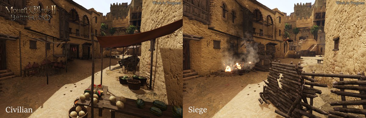 Кроме того, осадная версия города позволяет дизайнерам TaleWorlds гибко управлять будущими боями. Разработчики могут перекрыть некоторые улицы, уменьшив количество проходов и вынудив атакующих двигаться в определенном направлении.