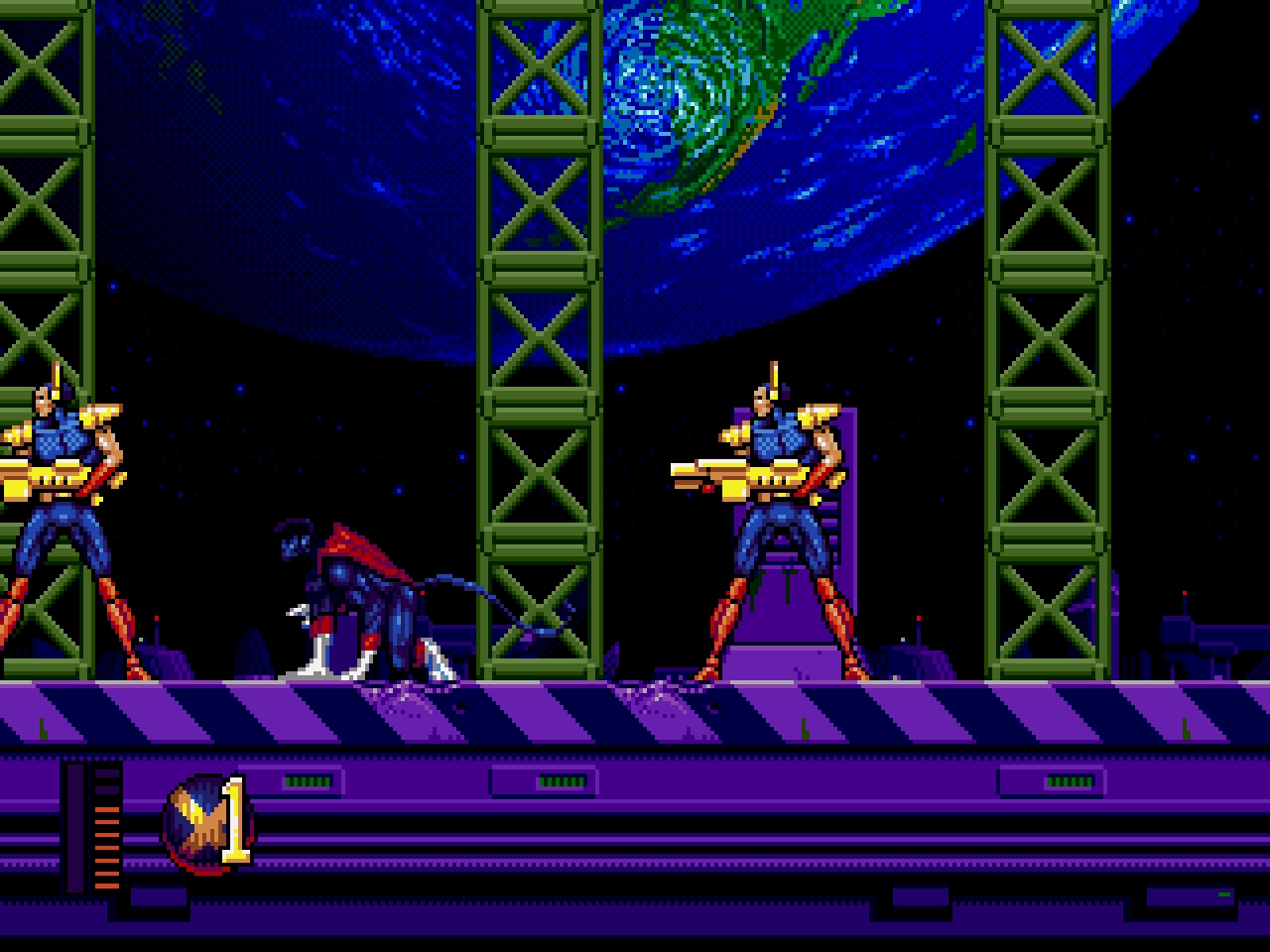 Если быть точным, то в финальной версии вы не увидите летающего Магнето, босса Мистера Синистера, с его необычным "кристаллическим" уровнем, чудовища-босса в джунглях, уровни на улицах города и прочего. Обо всём этом проще полистать галерею и почитать описание. Совсем детально разбирать игру я не стал, только самое интересное, на мой взгляд.