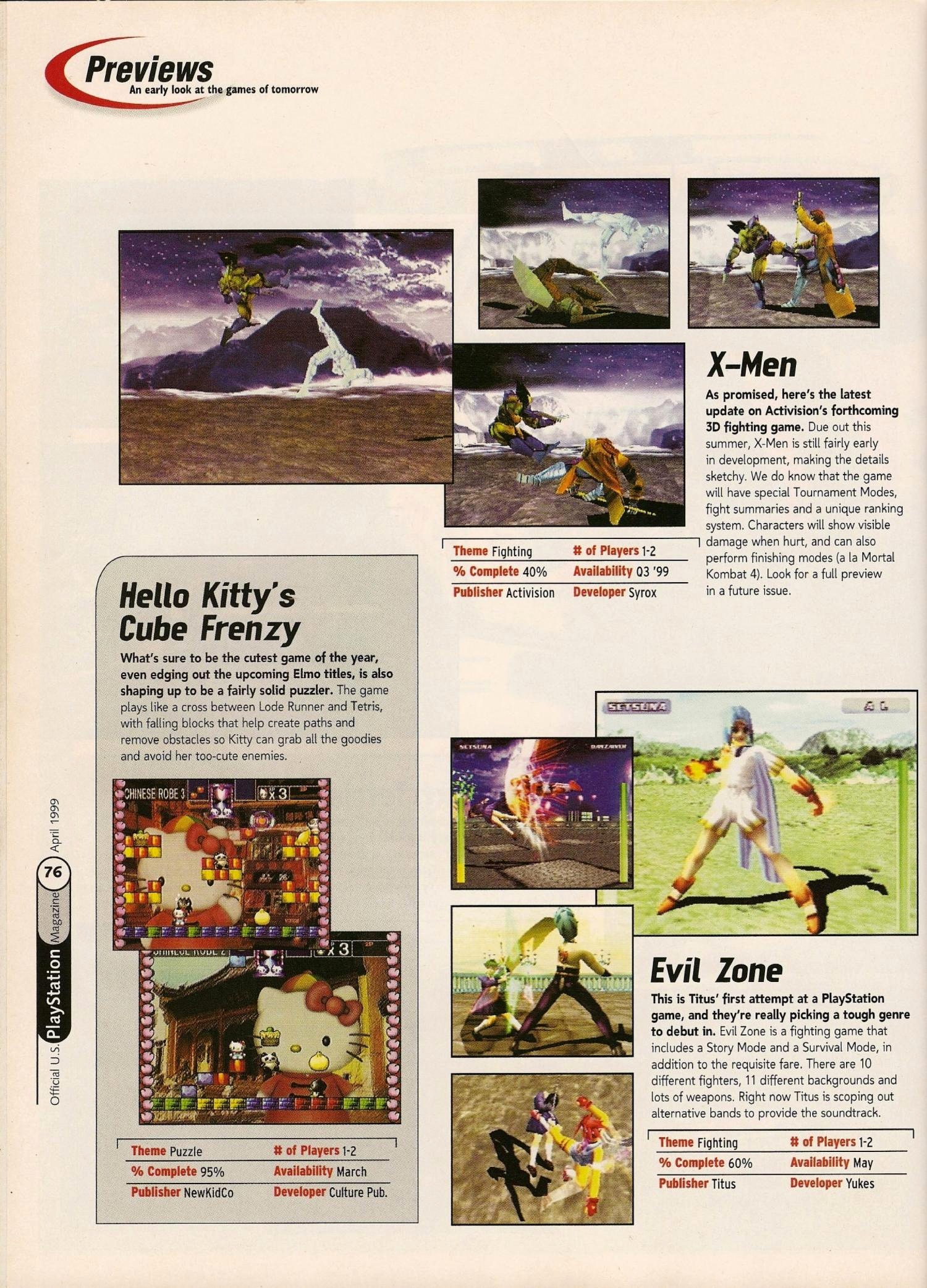 Как ни крути, а в роликах показали далеко не всех персонажей, увы, но полностью всех рассмотреть не выйдет. Немного того, чего нет в роликах, можно лицезреть на скриншотах, вытащенных из пресс.дисков и журнальных статей. В одном из журналах указанно, что игра была готова на 40%.